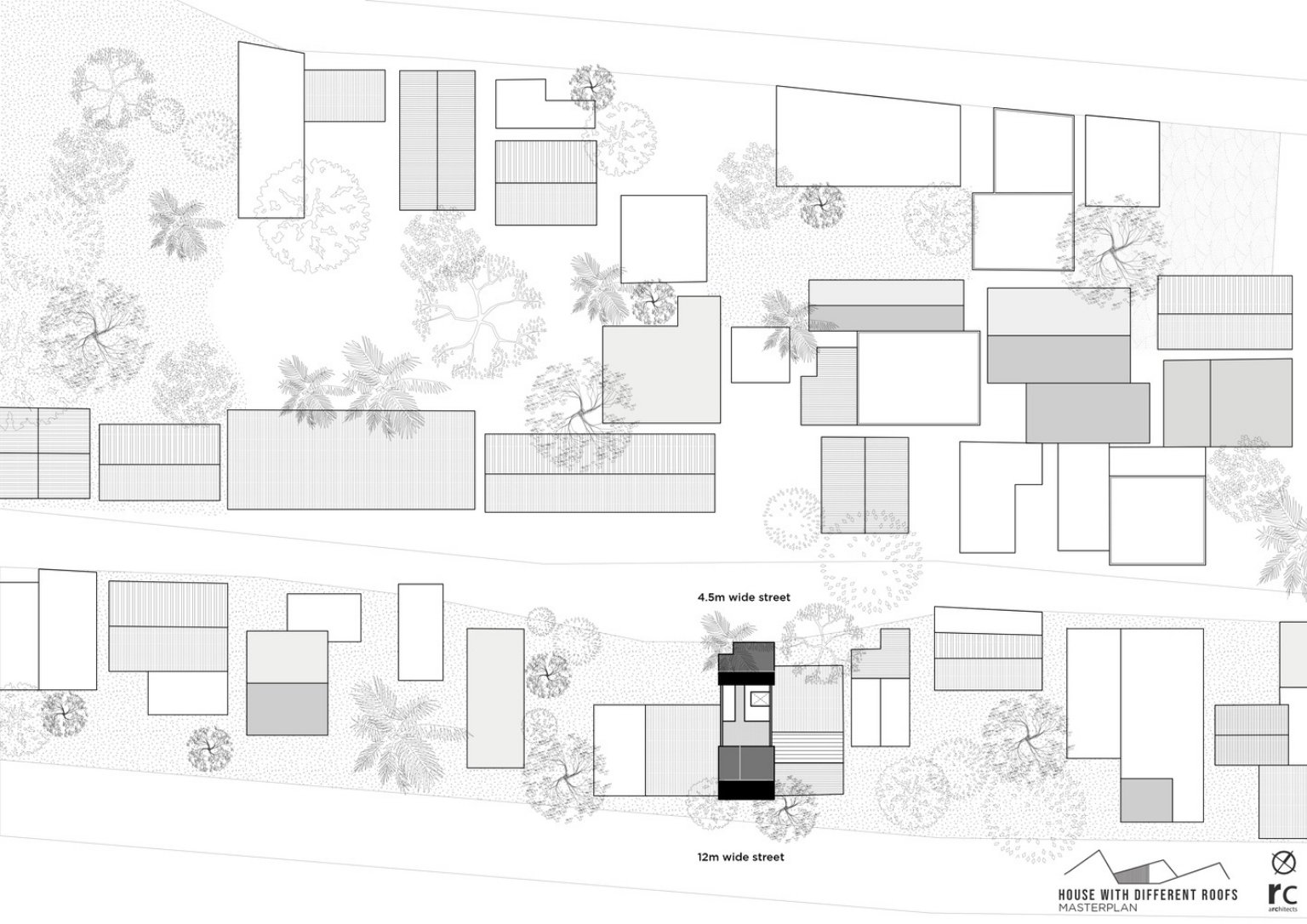 The layout presents the longer sides of the site in between adjacent houses, with the shorter sides in the middle of parallel streets. This blueprint materializes the vision of providing maximum natural light and ventilation in the built environment.