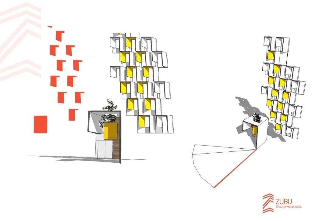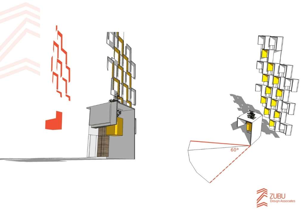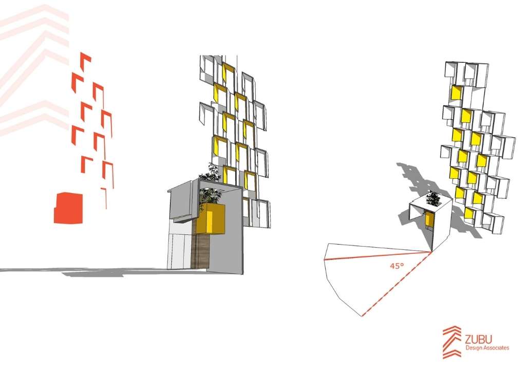 Installed protruding boxes along with sequenced canopies create visual depth for the hotel’s façade. Its an interplay of volume and form manipulation that Zubu Design Associates is accustomed to and has been known for.