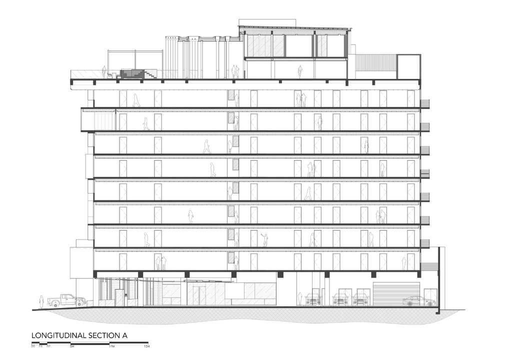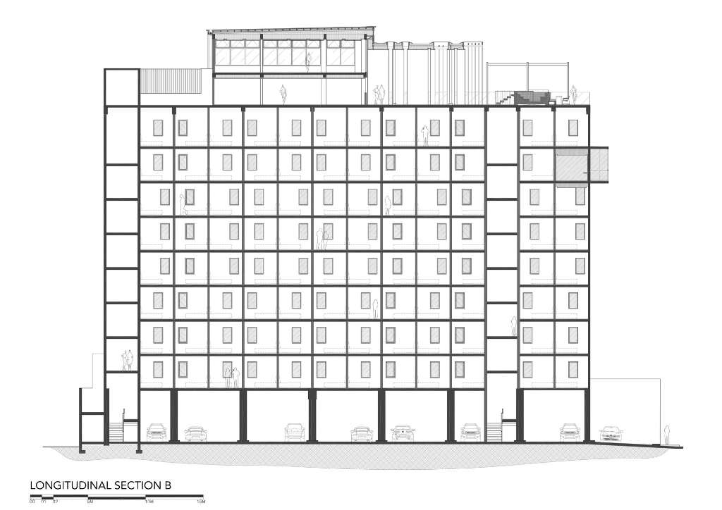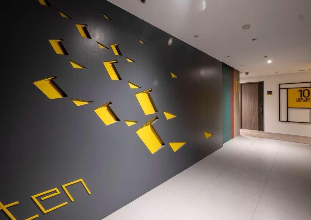 Yello Hotel is situated on an irregular lot with a constricted opening. ZubuDA maximized the ground floor by dividing it into three main sections – the lobby, the driveway, and the parking. The limited space allowed for another avenue of using modern technology in the likes of the mechanized parking system. For Yello!, the parking has a capacity for about 20 cars. Also based on the lot size, conceived was the T-shaped plan for each floor. This is to ensure high efficiency and to maximize the hotel room versus common area ratio.