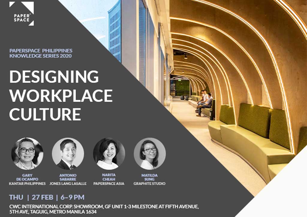 Designing Workplace Culture is the first Paperspace Asia forum held in the Philippines. The interior design collective now spans three countries: Bangkok, Singapore, and the Philippines, with 140 consultants and designers.