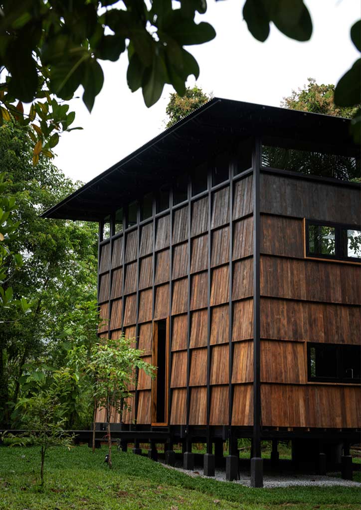 Chiang Mai, Thailand was the ancient capital of Thailand’s ancient Lanna Kingdom and is known for misty mountains and colorful hill tribes. It is a playground and rest area for wandering travelers. It is in this city where the old and new mingle where Thai architecture and design studio Sher Maker erected the wood and mountain cabin. This small cabin peacefully hidden in the middle of nowhere is highly in tune with its surroundings and allows visitors a respite from their adventures while still giving them visual access to Chiang Mai’s serene forests.