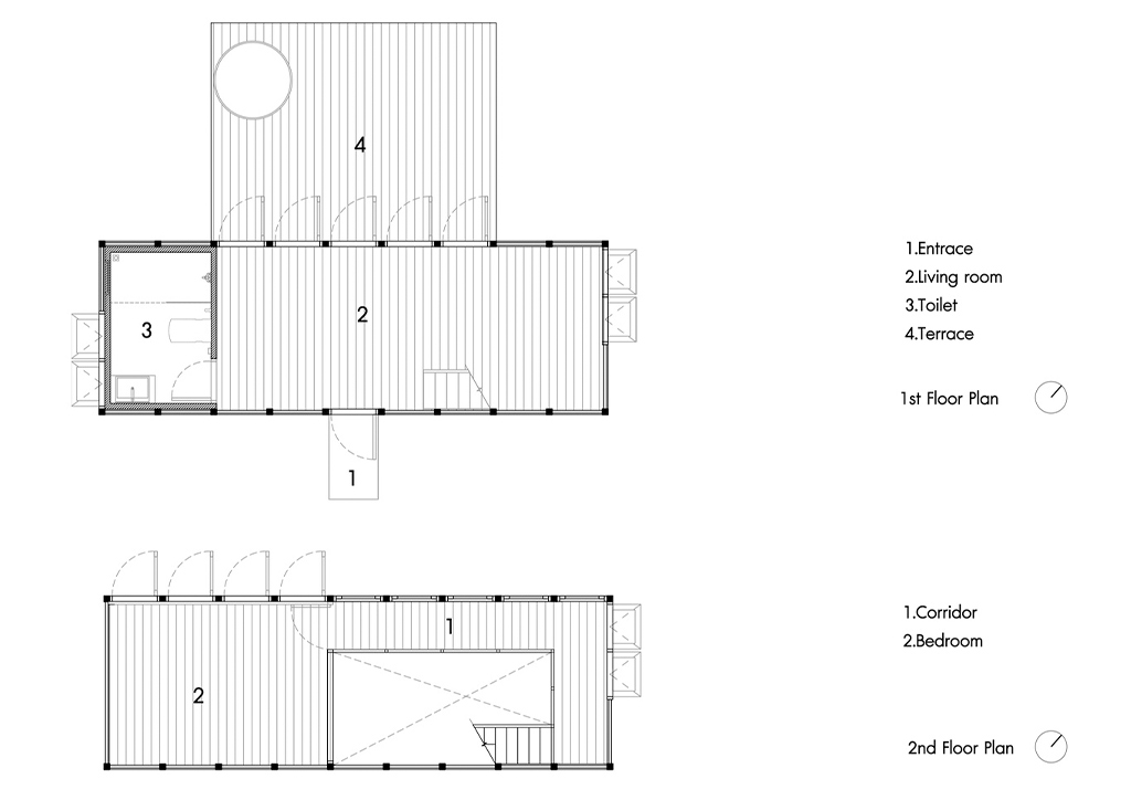 During the cabin’s conceptualization, the studio first experimented with wall mock-ups to collect samples and information on the material used–pre-existing, charred wooden planks. The charring process is heavily influenced by the Japanese Shou-sugi ban technique and lets the design blend better with its surroundings while making the cabin more resistant to weather conditions. Though it carries a simple design, its simplicity and imperfections carry strong symbolism that boils down to how authentic the structure is.