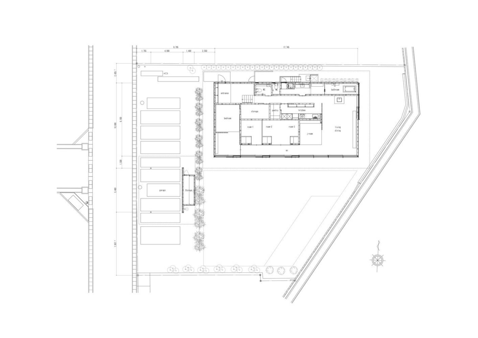 Moreover, the shoji screens on the south side of the residence come to life at night. They illuminate the surroundings with a soft light like an andon lantern. When it comes to the floor height, it was adjusted based on the traditional wooden houses built on stilts. This technique provides large storage space, moisture proofing around the house, maintenance of underfloor equipment, and disaster prevention measures.
