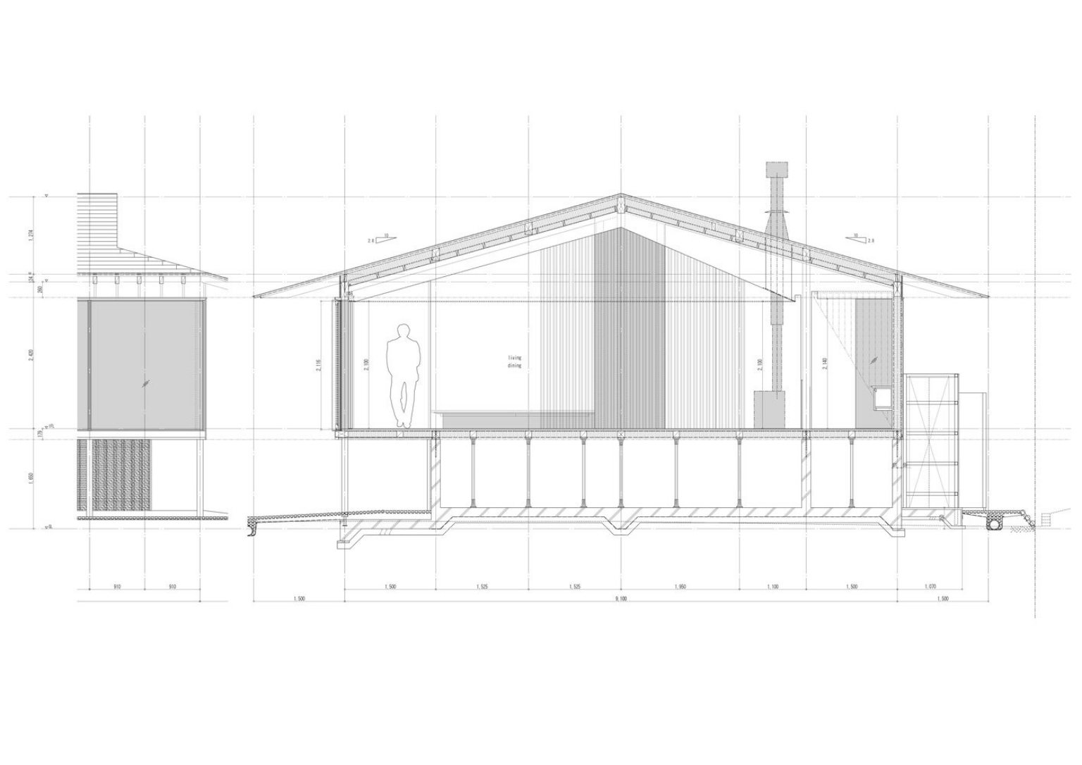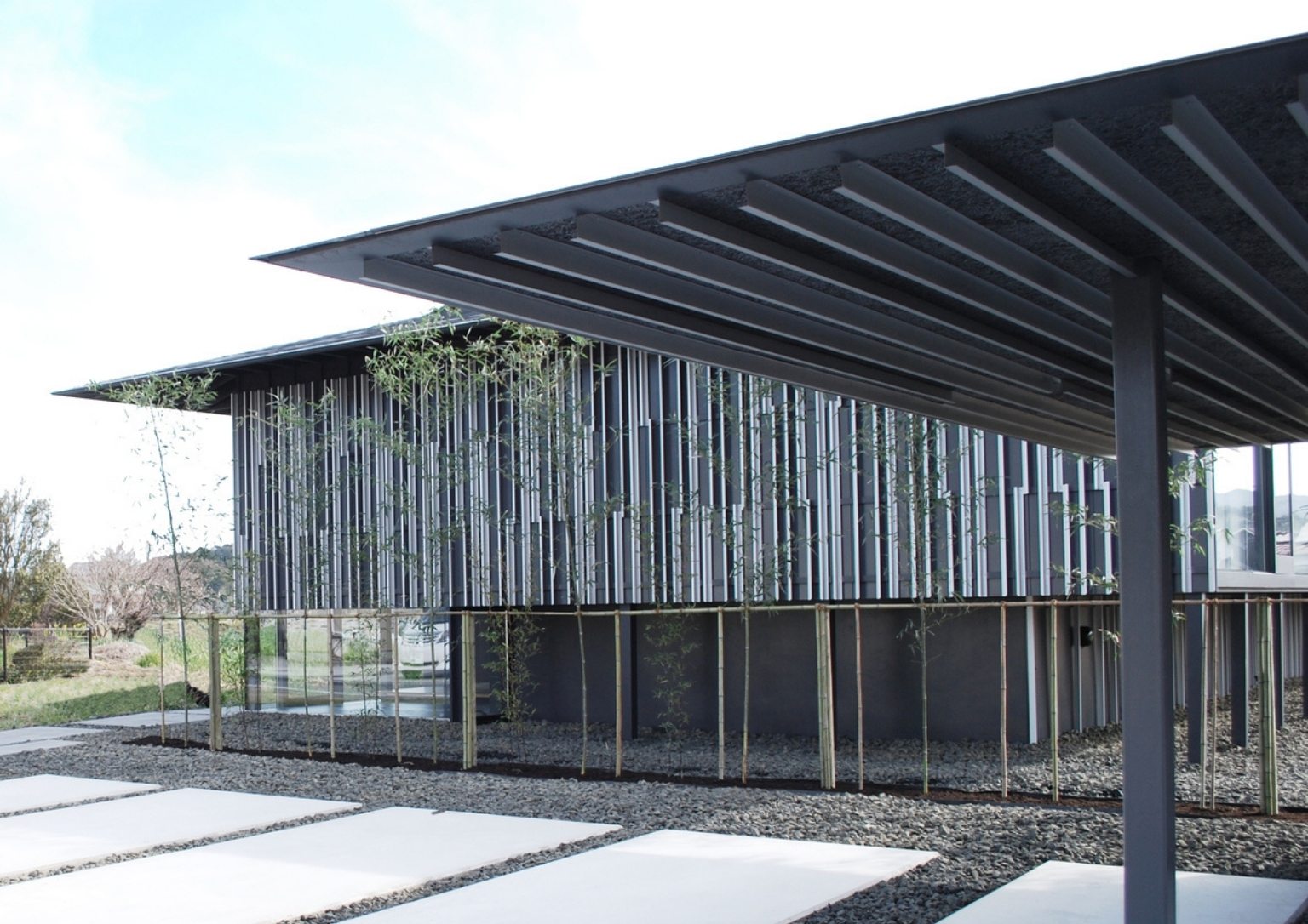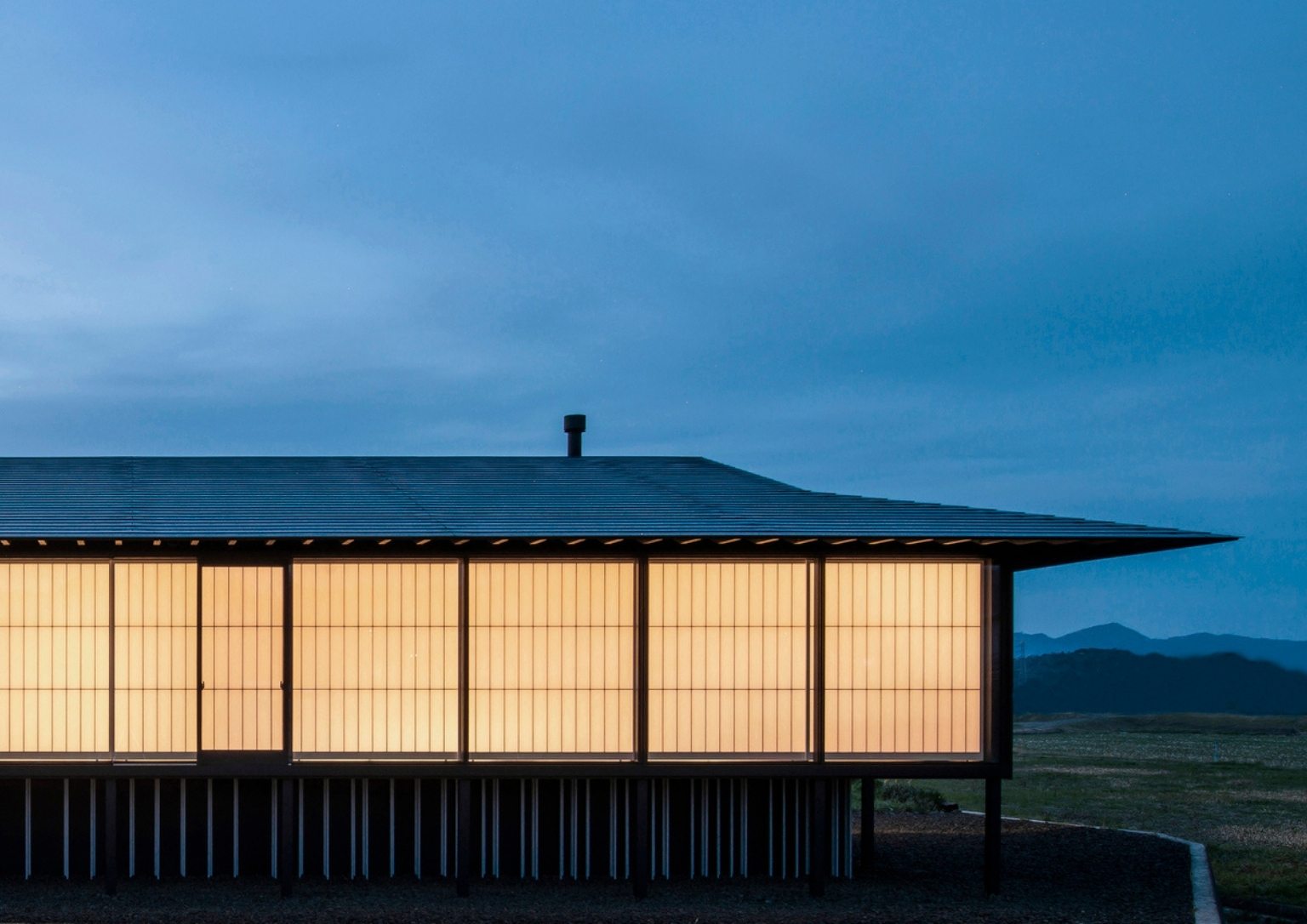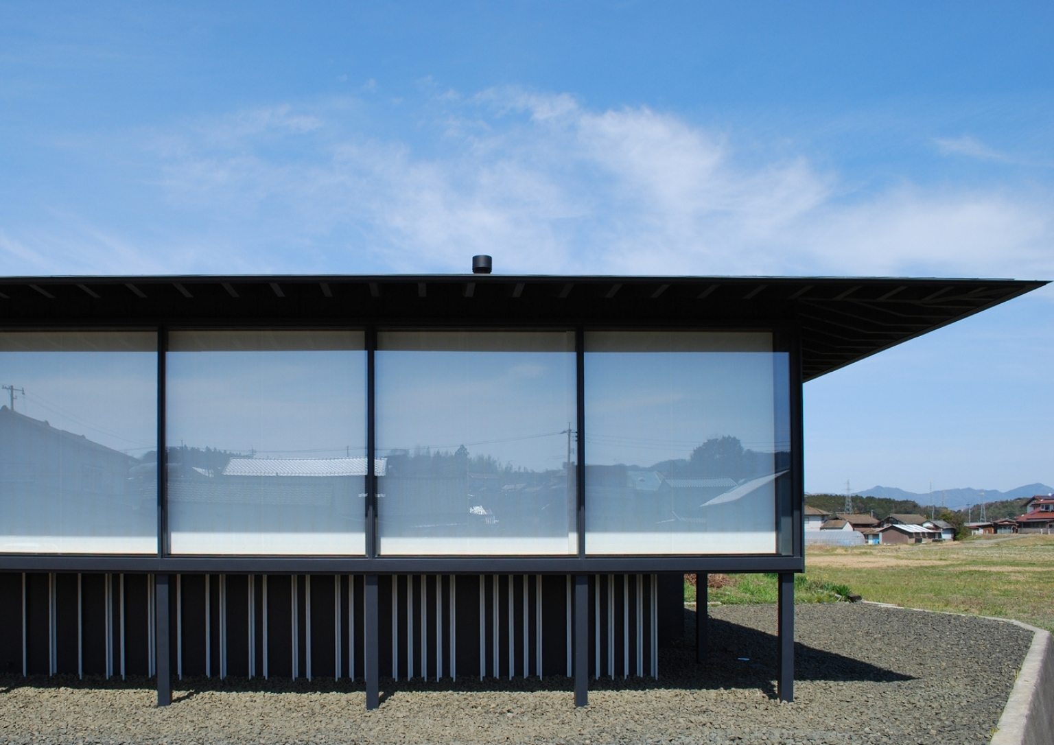 Since ancient times, the land has been a reed field. To address the problem, Makido Architects created a vertical grid, replacing the unique rustling of reeds, bamboo, and rice with generic man-made objects. They also eliminated formal Japanese elements to achieve their goal of creating the appearance of a series of vertical grids in the shade of deep eaves.
