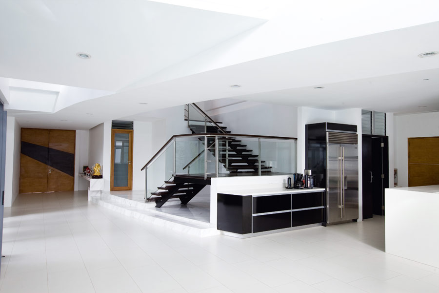 In 2011, Sia redesigned an 800-square meter warehouse in the uptown district of Guadalupe into a modern contemporary version of a traditional Chinese “compound house,” for an extended Chinese-Filipino family. This kind of house is often called a courtyard house, due to it being built around a central, open courtyard. However, instead of a courtyard, Sia placed a lobby-like entrance hallway within the structure, which serves as a central distribution space. Users are led from the main southern door to the outdoor lap pool at center-north; the kitchen, dining room and patio to the northwestern side; and the living and music room to the northeastern side.