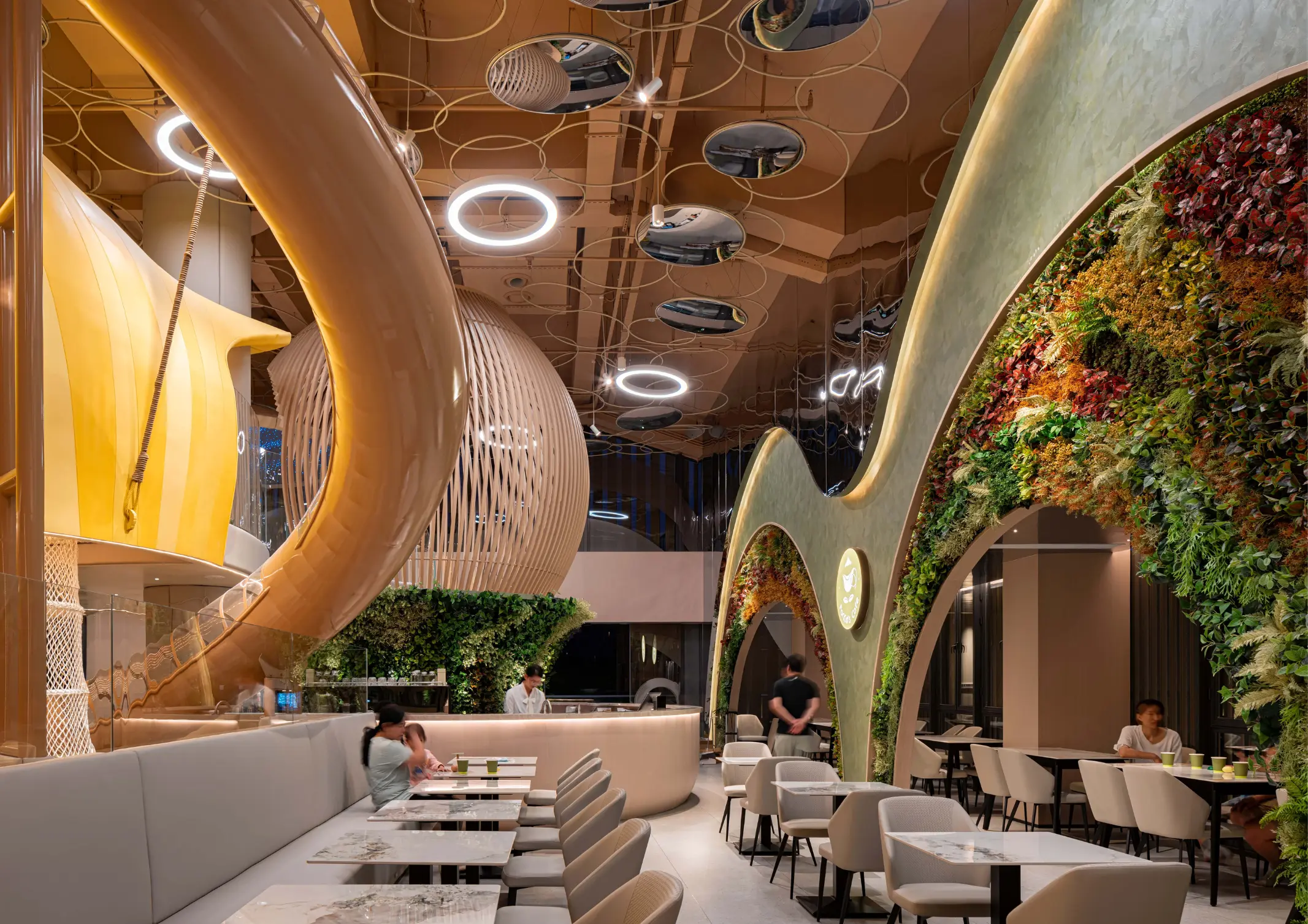 Situated within the Shenzhen Nanshan Park, Forkid’s Club is a composite family space designed by Horace Pan of PANORAMA Design Group. Drawing inspiration from the Valley of Dreams, the space pulls parents and children away from the busy city and into an imaginative world. Inside its three floors, the design integrates functions of play, learning, dining, and socializing.