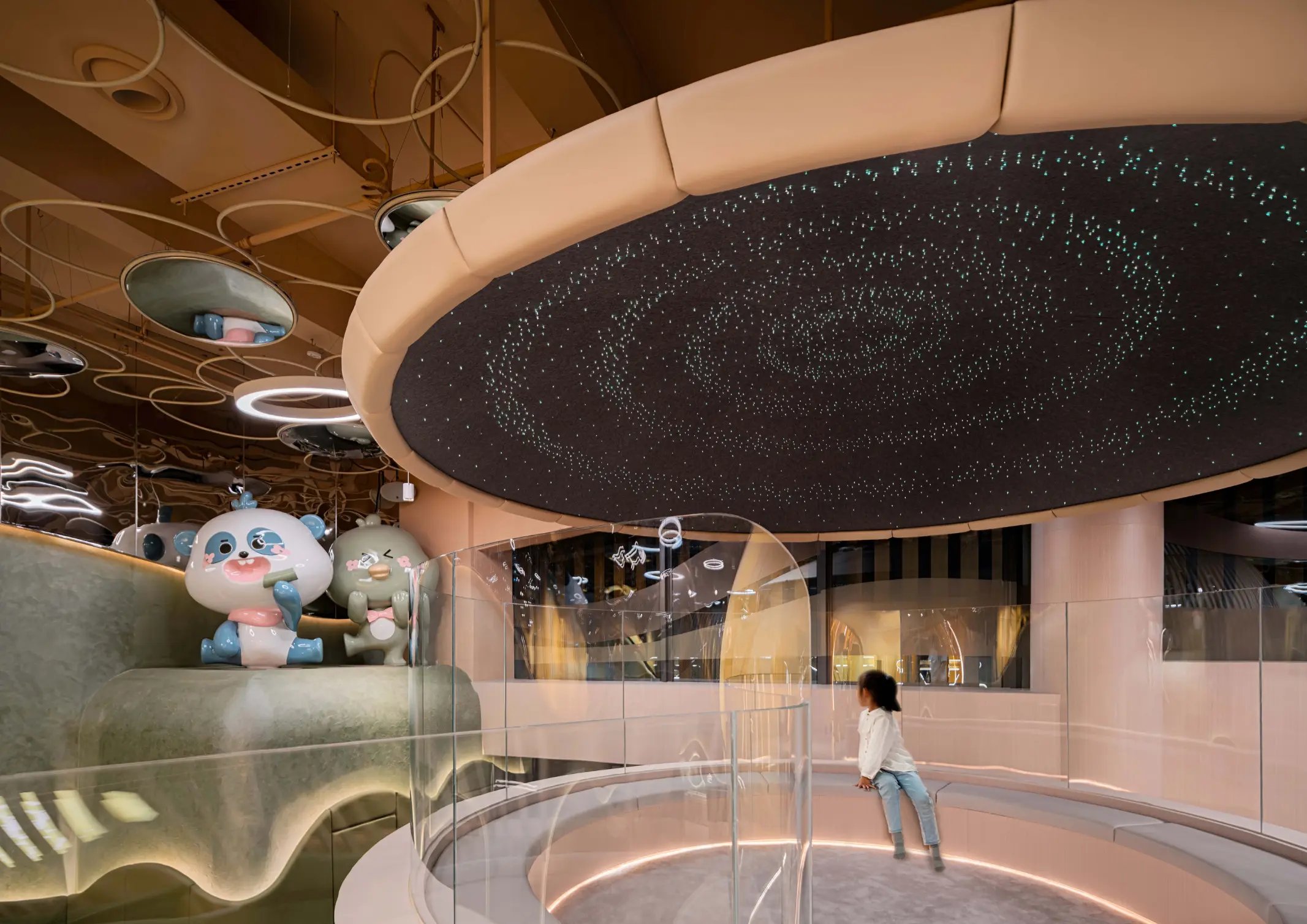 To complement the curved interiors, an abstract representation of the valley’s seasonal changes was used to stimulate children’s imaginations. Mirroring the natural landscape, the design offers memorable experiences for both parents and children across all three levels.