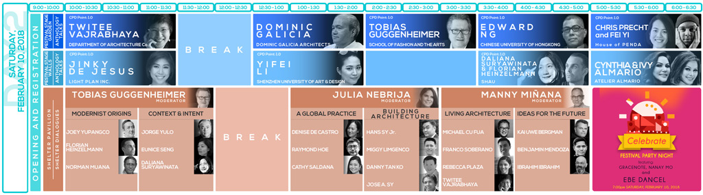 Joining the festival this year are prominent figures in the industry including: Kai Uwe Bergman of Bjarke Ingels Group, Chris Bosse of Laboratory for Visionary Architecture (LAVA), Lyndon Neri of Neri&Hu, Takashi Niwa of Vo Trong Nghia Architects, Billy Kwan of One Bite Design Studio, Rachaporn Choochuey of all(zone), Raymond Hoe of Scott Brownrigg, Dawveed Scully of SOM, Ben Duckworth of HASSELL, Erico Abordo of Architects of Accessibility, Twitee Vajrabhaya of Department of ARCHITECTURE Co., Dominic Galicia of DGA, Chris Precht Fei Yi of House of Penda, Jinky de Jesus of Light Plan Inc., Yifei Li of Shenzhen University School of Art and Design, Florian Heinzelmann and Daliana Suryawinata of SHAU, as well as World Architecture Festival 2018 winners Alexander Furunes, Sudarshan Khadka Jr. of Project Streetlight Tagpuro, and Edward Ng of Chinese University Hong Kong among others.