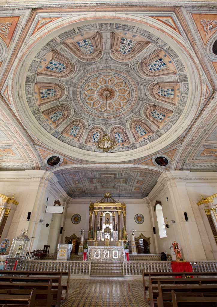 The Basilica used to have two belfries, but both fell due to a 1942 earthquake. Reconstruction began on the left belfry in the early 1990s, but the result caused much uproar among the parishioners and heritage lovers, as the shape was too narrow and the dome looked like a milk bottle’s nipple. Two years later, the new belfry’s thickened walls and wider roof make it look more like the original. Architects likely did not rebuild the second belfry because the Basilica’s coral stone structure wouldn’t have been strong enough to support the weight of a new dome made with heavy modern cement.
