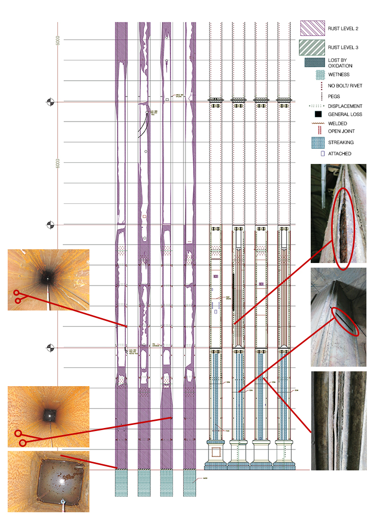The conservation team had to devise a way of looking inside these columns which are, fortunately, hollow, allowing for monitoring devices to drop 20 meters down to their floor. What would these aging columns tell them about the structural stability of the building?