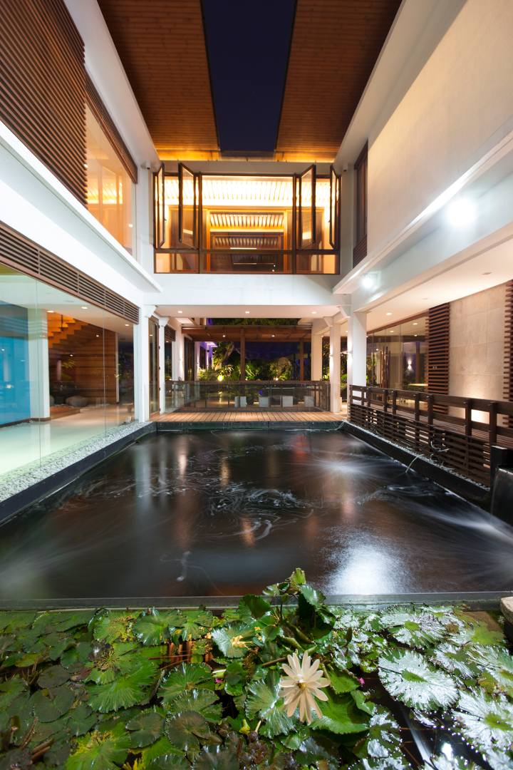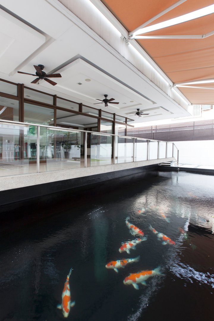 Unlike other fish, koi are best viewed from above, rather than from the side, as in an aquarium. This is because their beautiful patterns, some highly coveted, are on the dorsal or upper side of the fish. When a koi pond is seamlessly integrated in a part of a house that is designed for relaxation, the koi’s vivid colors and graceful movements appear to have been created just for that purpose.