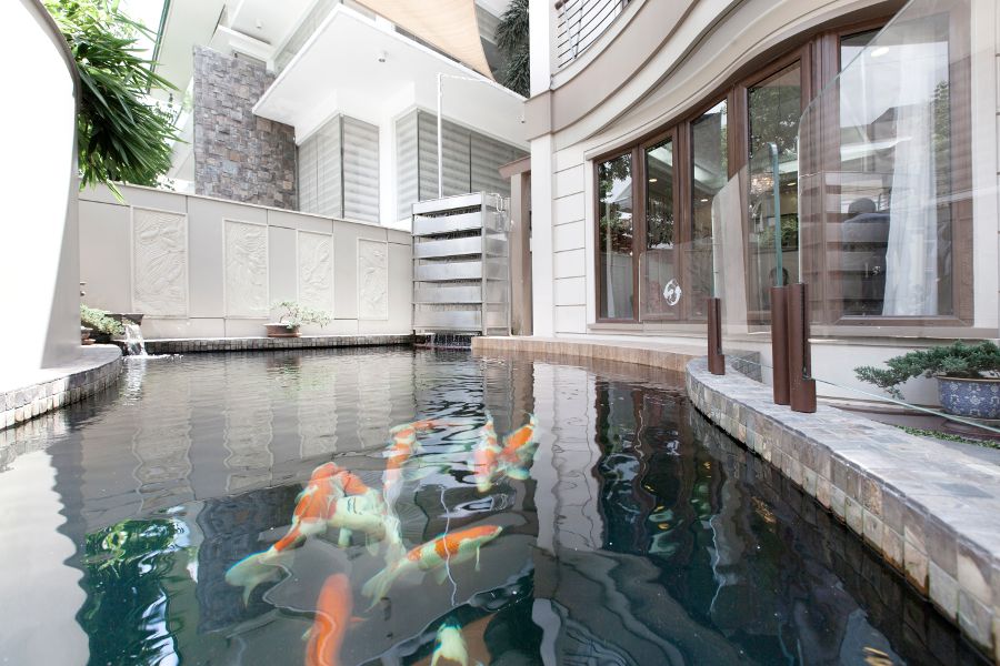 Generally speaking, a koi pond is designed with the intent of keeping just koi. Should the owner wish to have other kinds of fish, the larger goldfish like Sabao and Tamasaba can co-exist with koi. But carnivorous fish like arowana and arapaima may lead to the extinction of one’s koi collection.