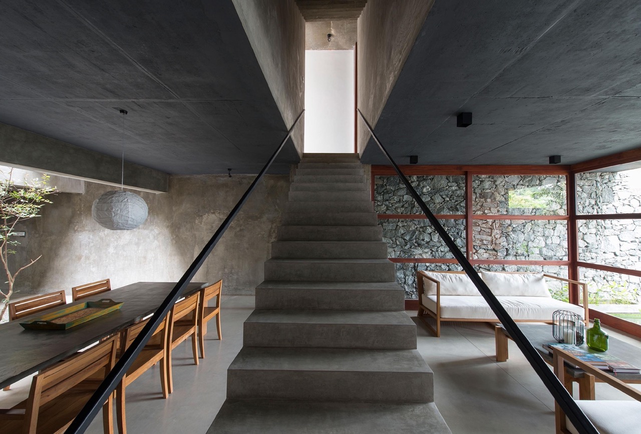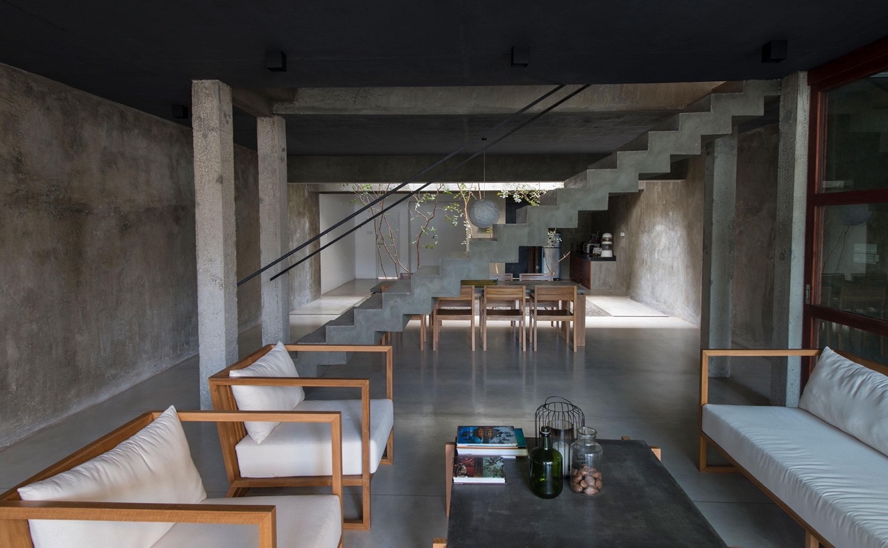 Polished concrete serves as the main material used to form the interior finishes. Its minimal and simplistic effect achieves a zen-like atmosphere. The use of timber, stone, and brick builds upon this as they are left in their natural state. Local artisans crafted the custom-designed timber screens and built-in furniture.