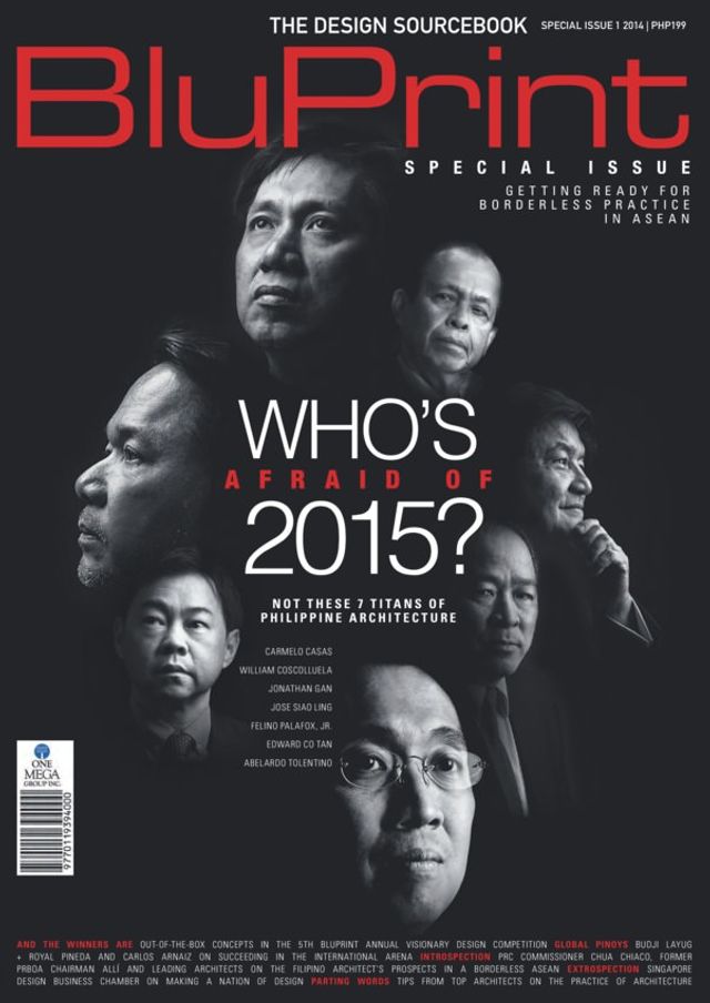 Philippine architecture giants, Carmelo Casas, William Coscolluela, Jonathan Gan, Jose Siao Ling, Felino Palafox Jr., Edward Co Tan, Abelardo Tolentino magnified generation’s design rationalism with this 2015 cover.