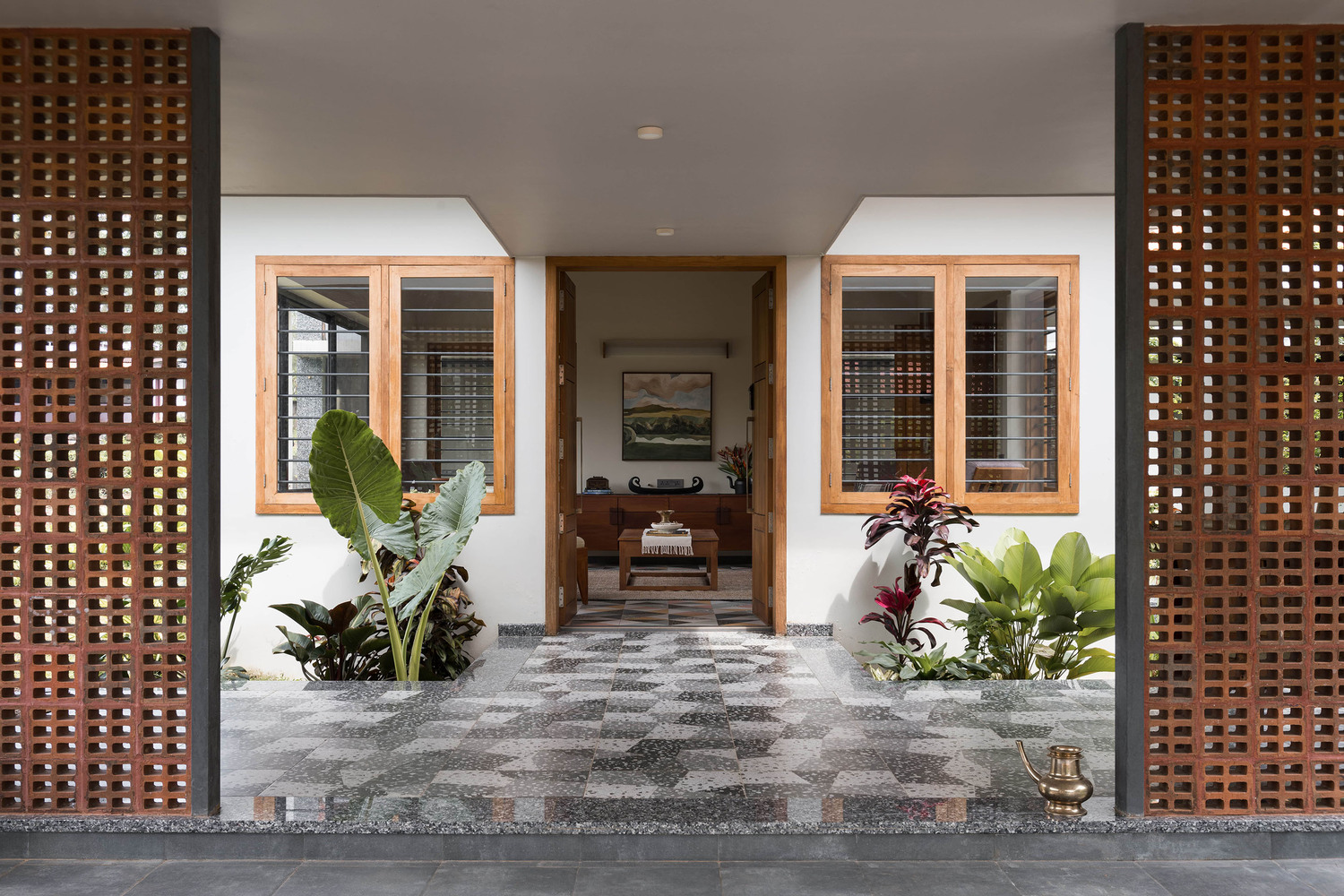 The house features an abstract means of interpreting Kerala’s traditional architecture. It does this to harmonize it with the realities of modern day-to-day life. The spatial programming echoes that of a Nalukettu home as seen in its long corridors, variation in ceiling heights, and assortment of verandas. Thoughtful details, such as the sculptural built-in furniture and the seamless flow of terrazzo flooring from indoors to outdoors, demonstrate a commitment to craftsmanship and a holistic approach to design.