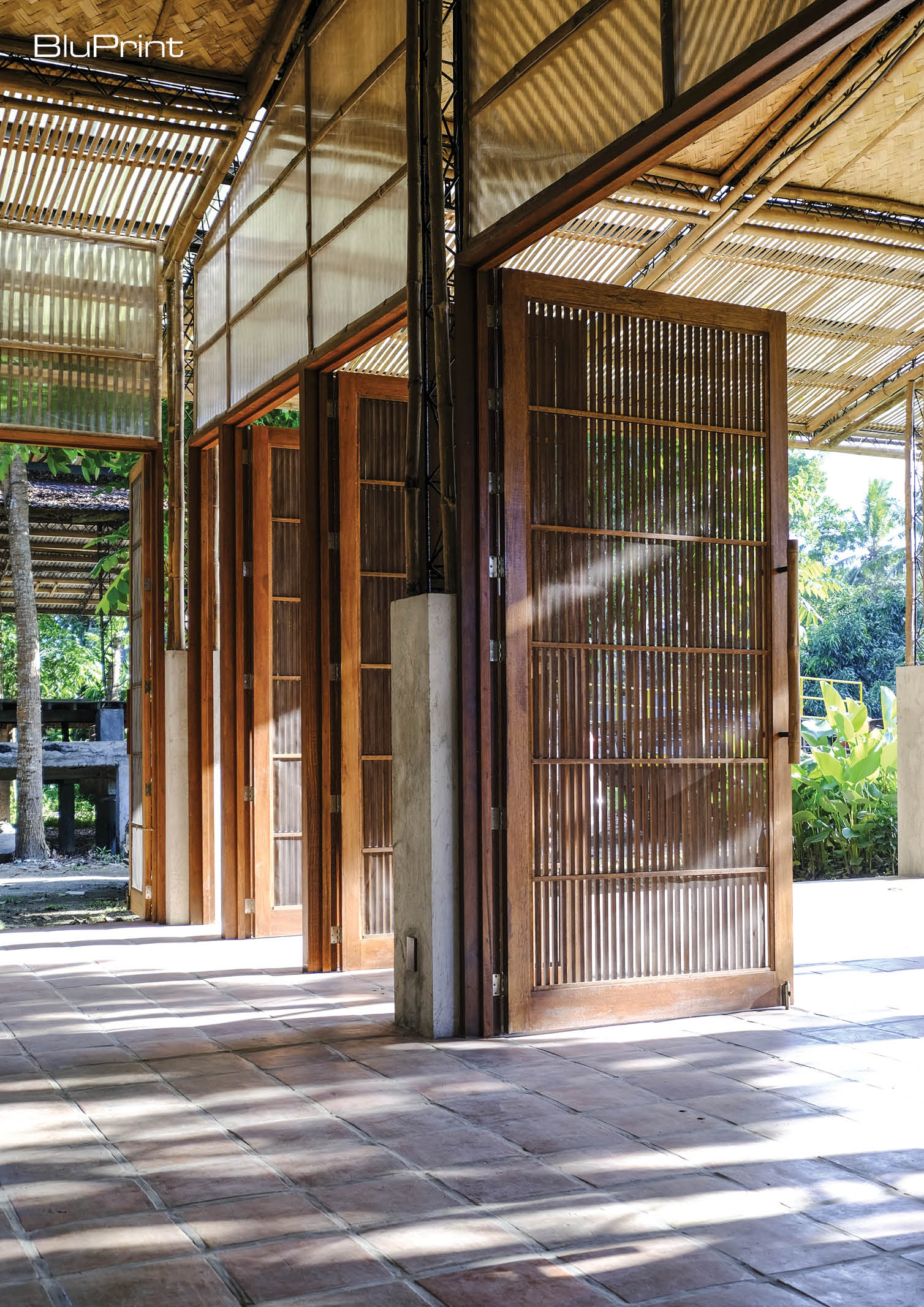 The Reception Building meanwhile uses bamboo, recycled narra wood, and handmade clay bricks from the nearby town of San Juan. Galicia explained that the bricks are arranged in a pattern resembling weaving.