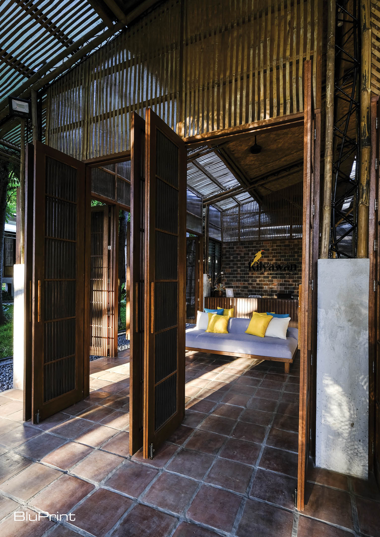In the town of Ibaan, Batangas, approximately 95 kilometers from Manila, a bamboo farm resort offers a place for solitude that allows people to take a break from the hustle and bustle of the city. Named after the local black-naped oriole, the kilyawan, this project is a 8.5-hectare farm resort previously used as an agro-industrial complex that 55,000 egg-laying chickens used to call home.