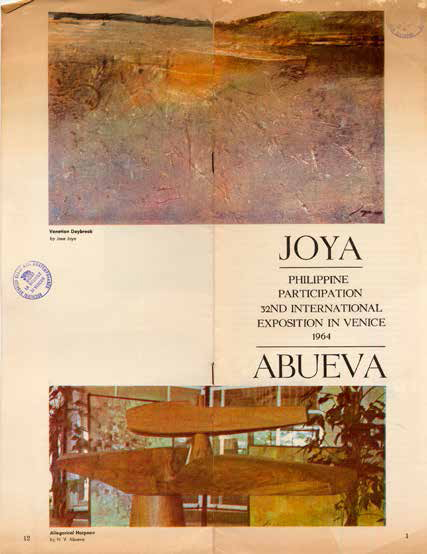 In 1961, Purita Kalaw Ledesma, art critic and founder of the Art Association of the Philippines (AAP) wrote the Venice Biennale and received an invitation the year after. However, we were only ready to participate in 1964. Painter Jose Joya and sculptor Napoleon Abueva, now both National Artists, were that year’s representatives to the world’s oldest (dating back to 1895) and preeminent stage for contemporary art.