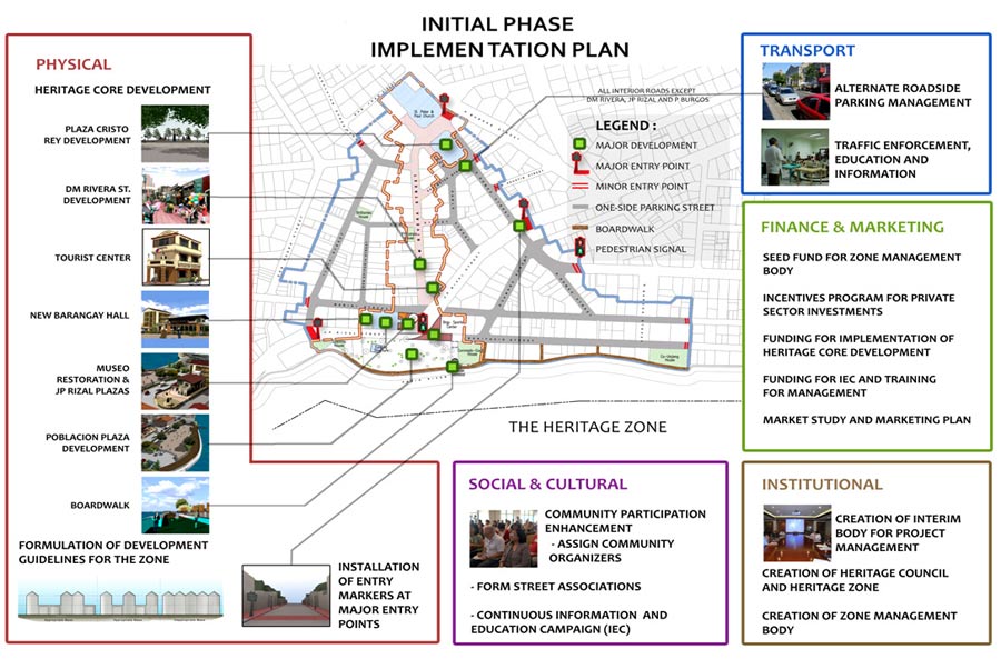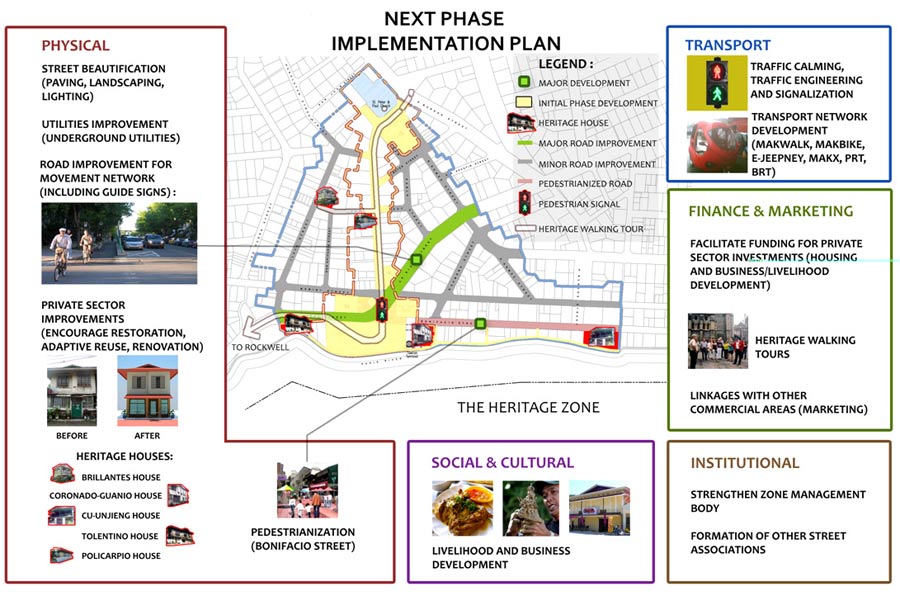 The city must employ adaptive reuse for the existing heritage buildings. To complement this, new developments will be encouraged to have architectural designs that are sensitive to the heritage structures and to the vision for the area. Aside from implementing the above policies, the city must undertake certain identified priority actions. The resulting physical improvements from these priority projects are expected to catalyze counterpart investments from the private sector.