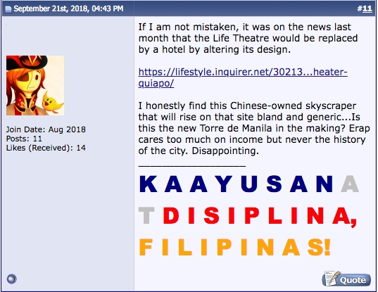 We will bid farewell to Quiapo heritage buildings, including the Art Deco Life Theater (or Teofilo Villonco Building) designed by Pablo Antonio behind the Quiapo Church. These will be soon taken down to make way for a new 33-storey commercial building.