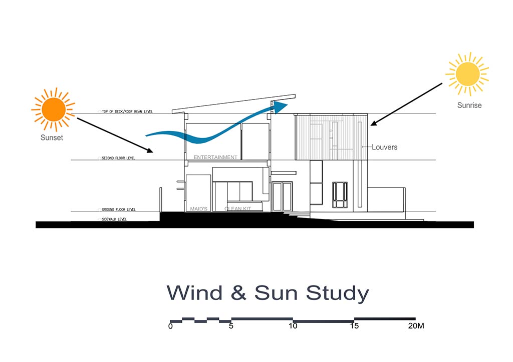 We need to be “Sensitive and Practical Architects” when we are designing a structure. Sensitive: There are projects that need to stand out and there are projects that need to blend in. But there are also projects that need to be both. Such as this one. It stands out due to its sculptural form yet being Sensitive, it does not completely alienate the looker because elements familiar to the place and the viewer were added in the design like the araal stones, wooden slats and extended roof eaves and balconies. Practical: We need to create design elements that not only look good but also have a Practical use to it like the vertical reinforced slats that we added to act as brise soleil and at the same time as wind and debris barrier during strong typhoons.