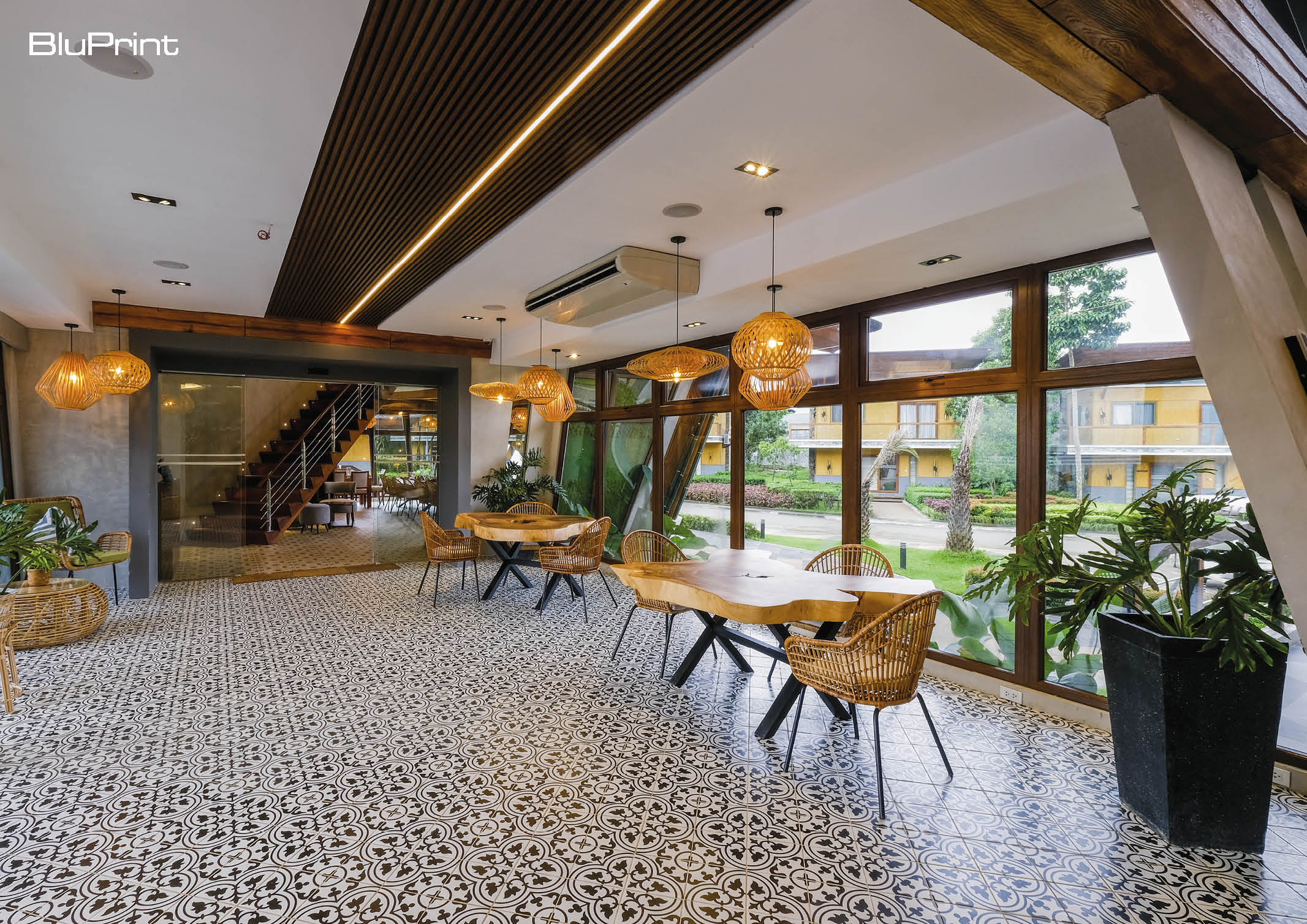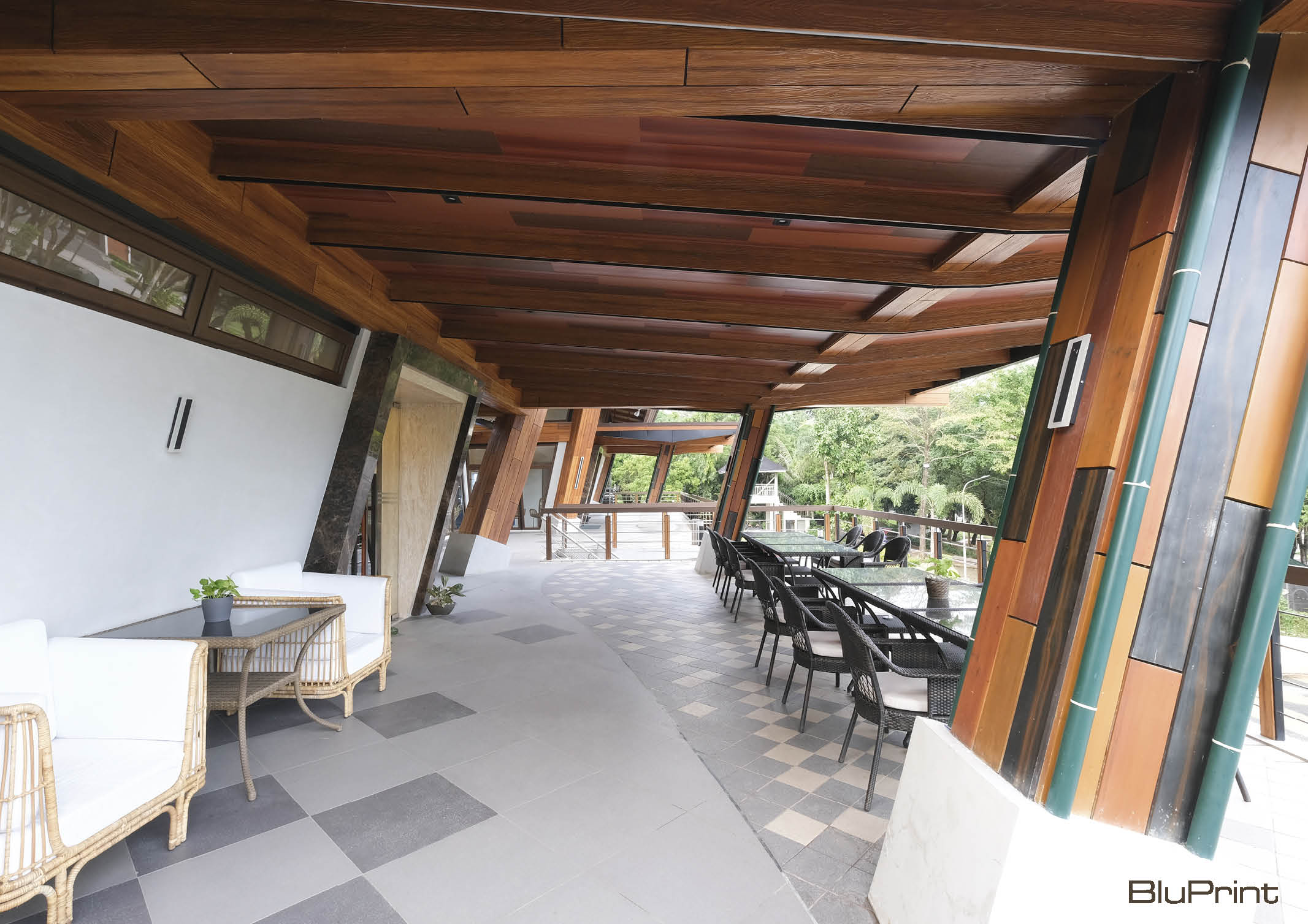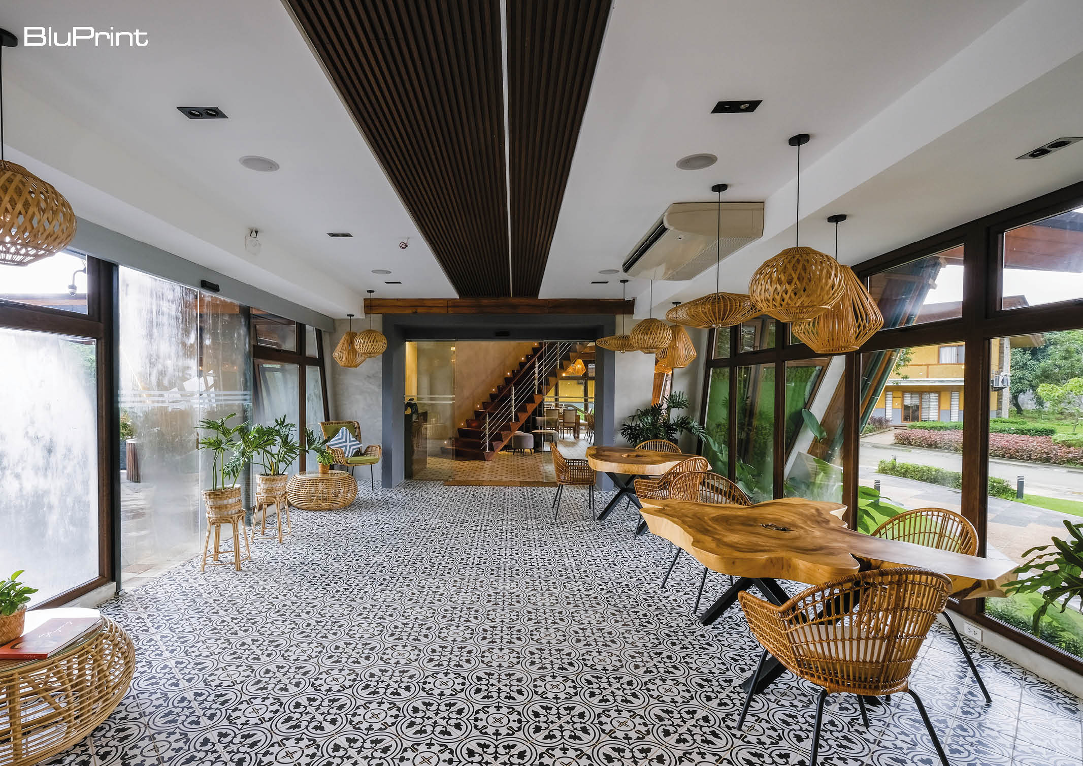 At first glance, the building is undoubtedly Filipino-made for the use of familiar local materials but with a modern take while blending smoothly with its environment. Architect Dryan S. Tria, Principal Architect of DST Design + Build shares on BluPrint that his firm strives on modernizing Filipino architecture and design and pieces all other design elements together in harmony with its natural environment.
