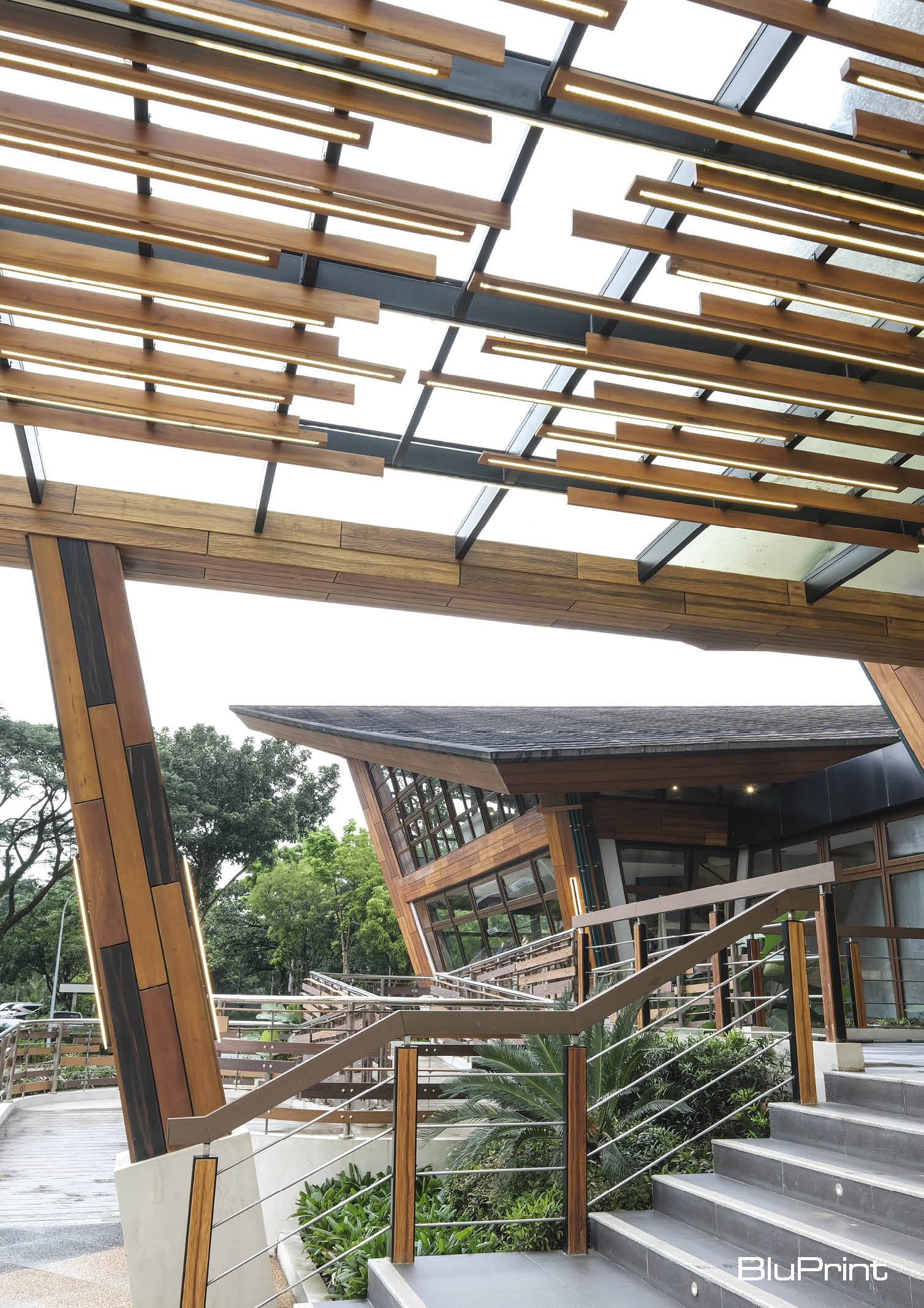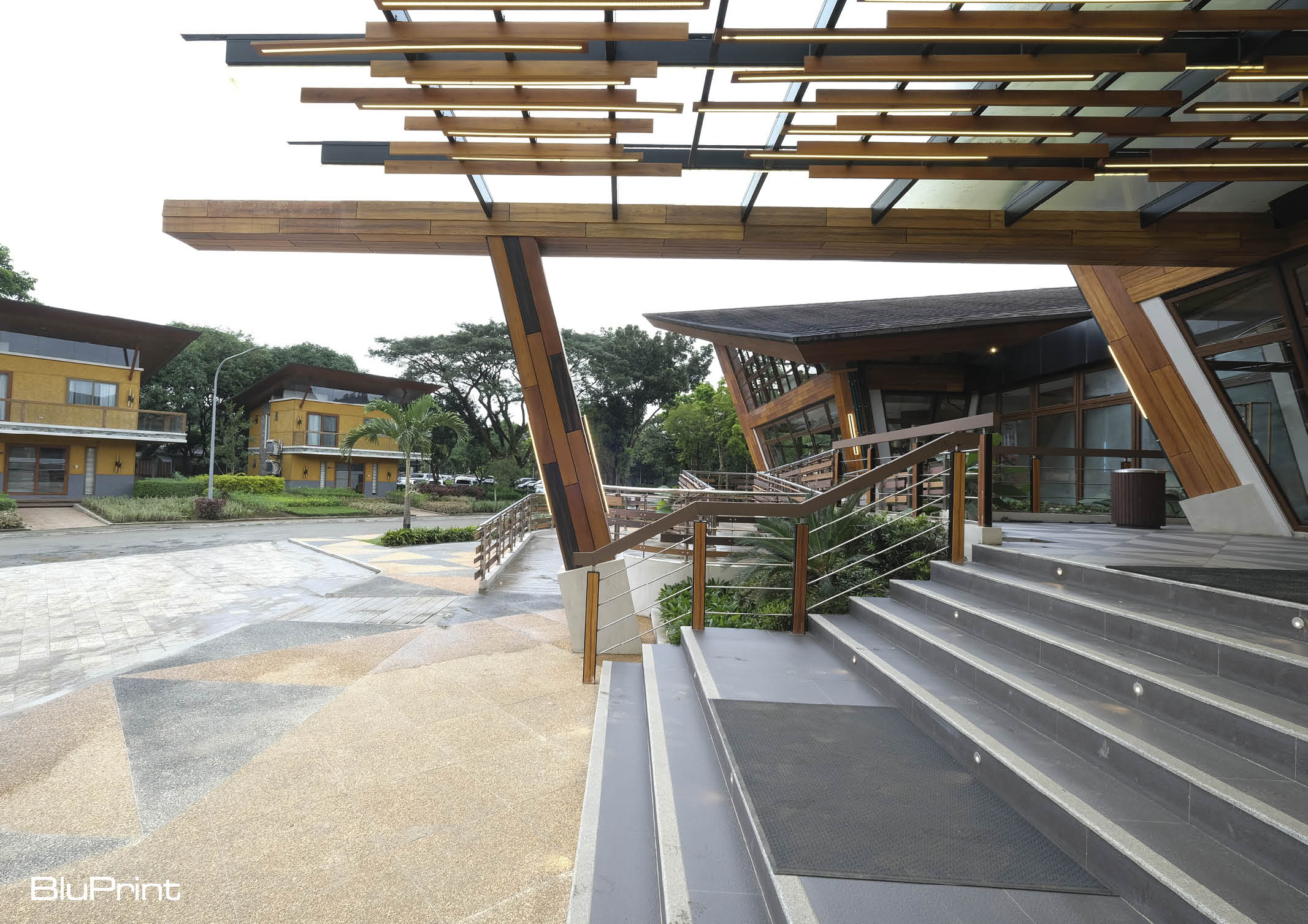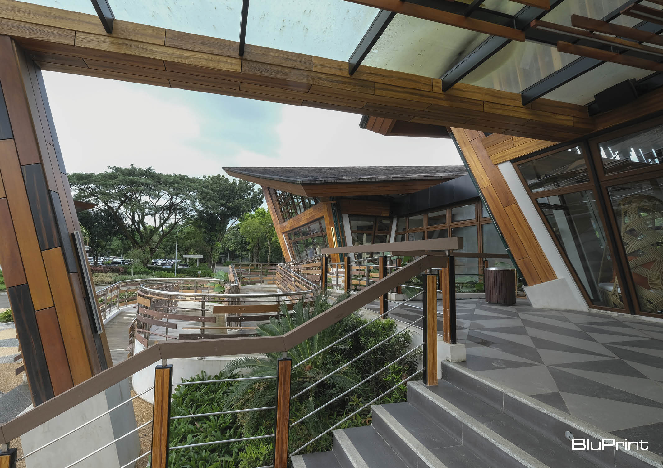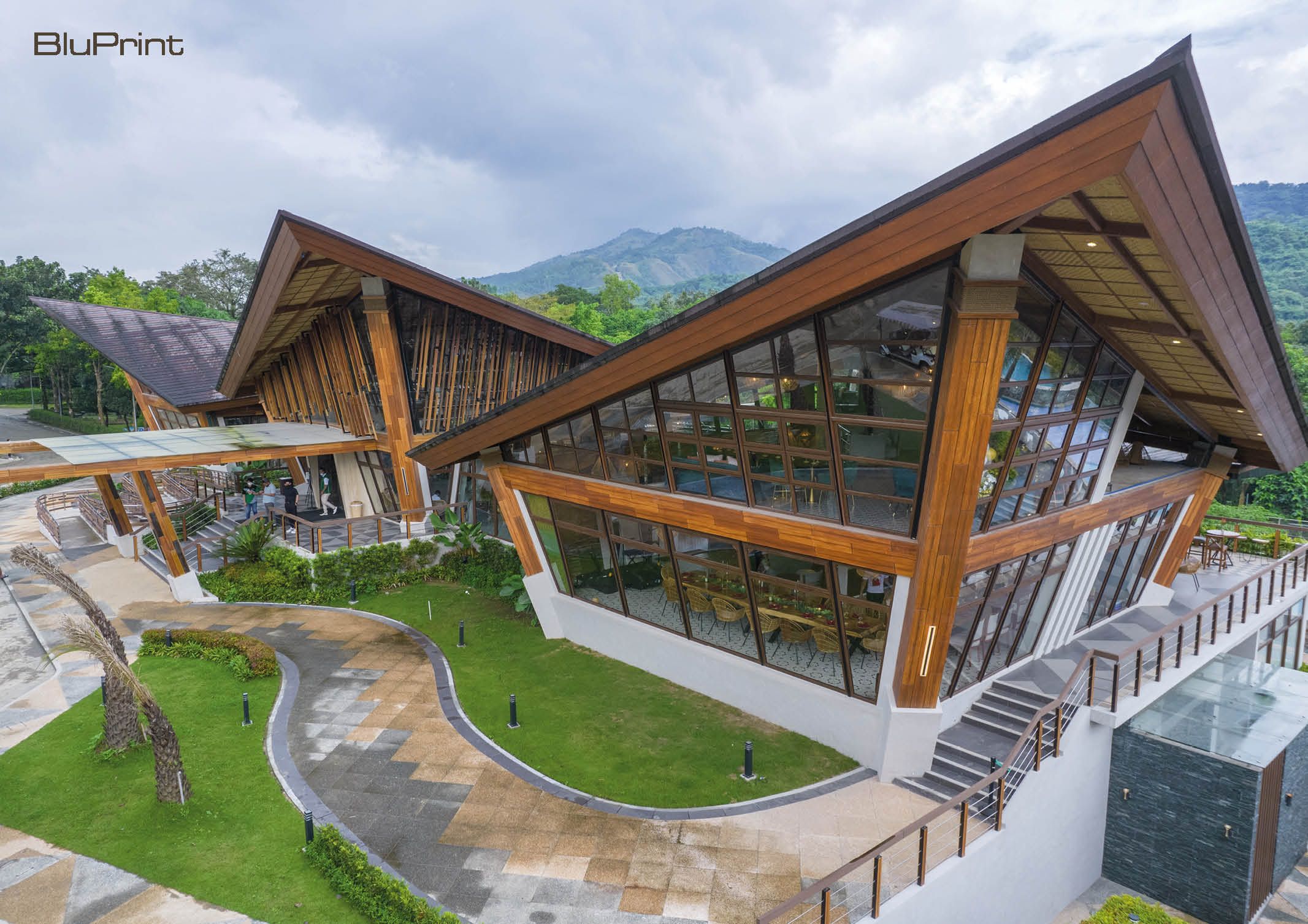 Looking closely at the structure, it is a beautiful interpretation of a deconstructed basket. The structure is divided into three clusters. The main structure serves as a reception and lounge area. The left zone serves as the back office of the structure, while the right zone functions as a bar and lounge restaurant. This architectural intent aims to connect all areas while still enforcing diversity in creating contiguous space dynamics that function differently but operate as one. Hence, converging all areas to the view deck alfresco section reveals the beautiful Majestic Mountain view of the Sierra Madre creating that one nature concept.