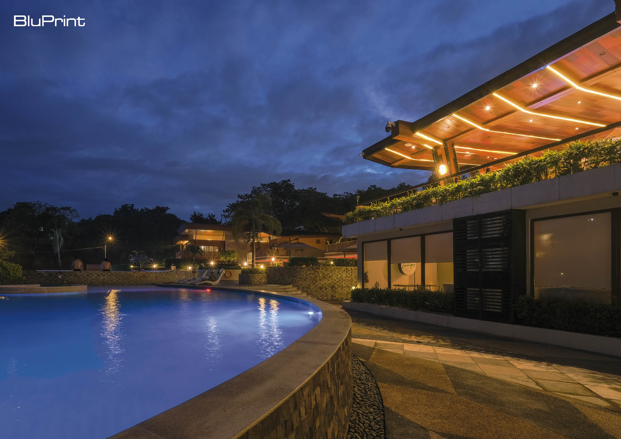 “The shape of the shell has that distinct and perfect logarithmic spiral curve, now referred to as the Golden Ratio, this is our guiding line, which shaped the concept of the infinity pool,” Architect Tria shares as he explains how they came up with the shape of the pool. It is divided into several zones: the sunbathing lounge area, the planter’s area which serves as a vegetation zone for ornamental plants, and Palm Trees, the ring-shaped lounger which signifies the Three Large Islands of the Philippines–Luzon, Visayas, and Mindanao.