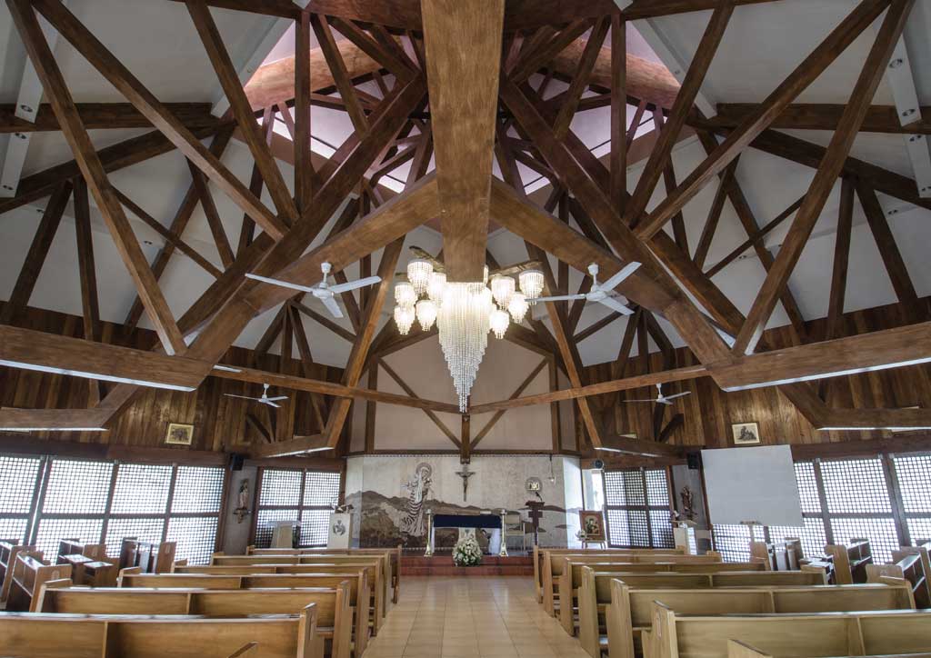 Locals have taken to calling it the “seashell church,” because of its generous use of polished capiz and mother-of-pearl shells collected from the shores of Negros. The Stations of the Cross, the altar, the statues of saints and the 9 x 21-foot mural behind the altar are made from shell mosaics that number in the hundred thousand, all done by a local named Leticia Sia-Ledesma. The use of wood for the trusses and sliding doors combines with the shells to give the Virgen Sang Barangay Chapel a distinct local flavor, making it a unique piece of architecture in the country. ![]()