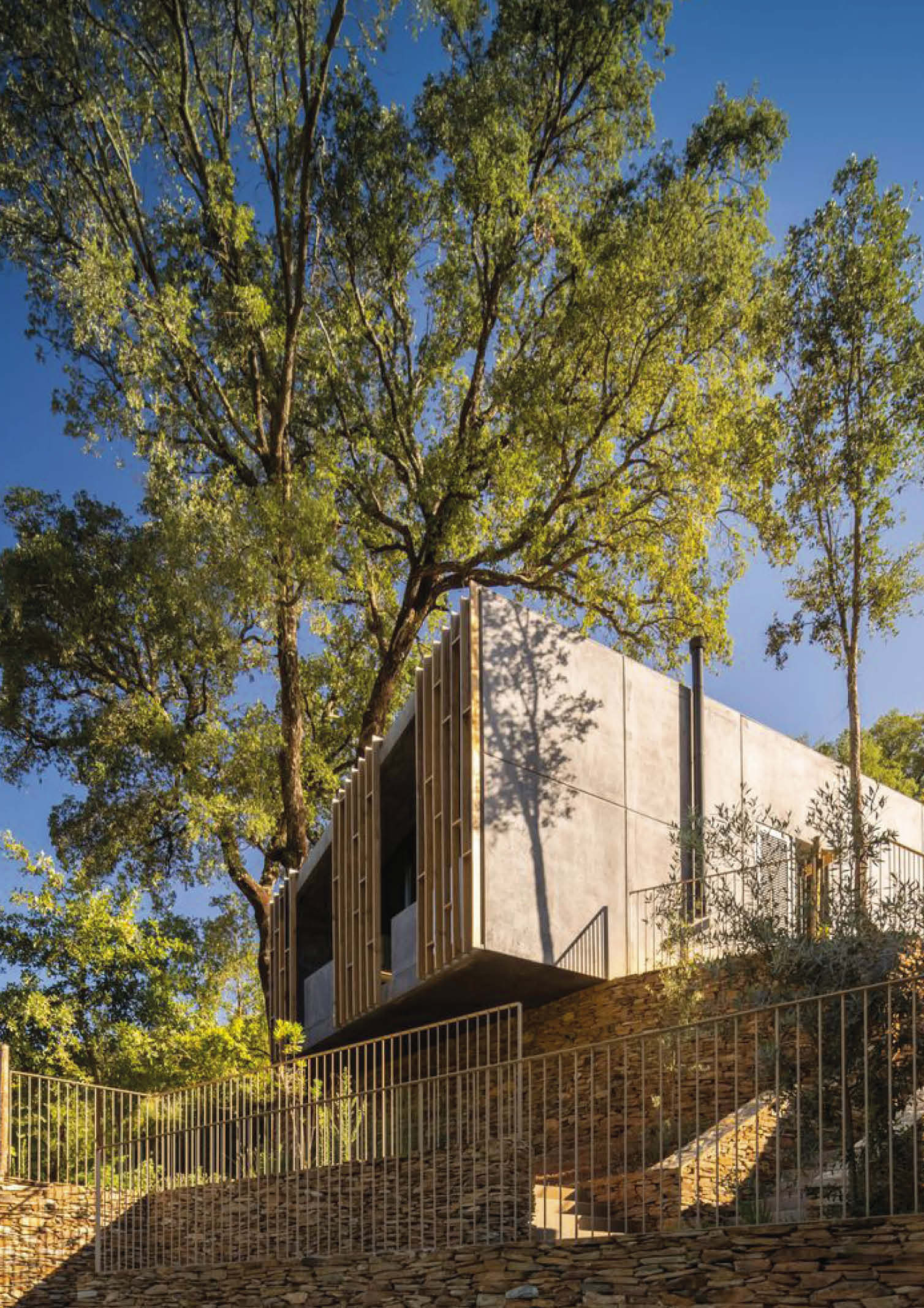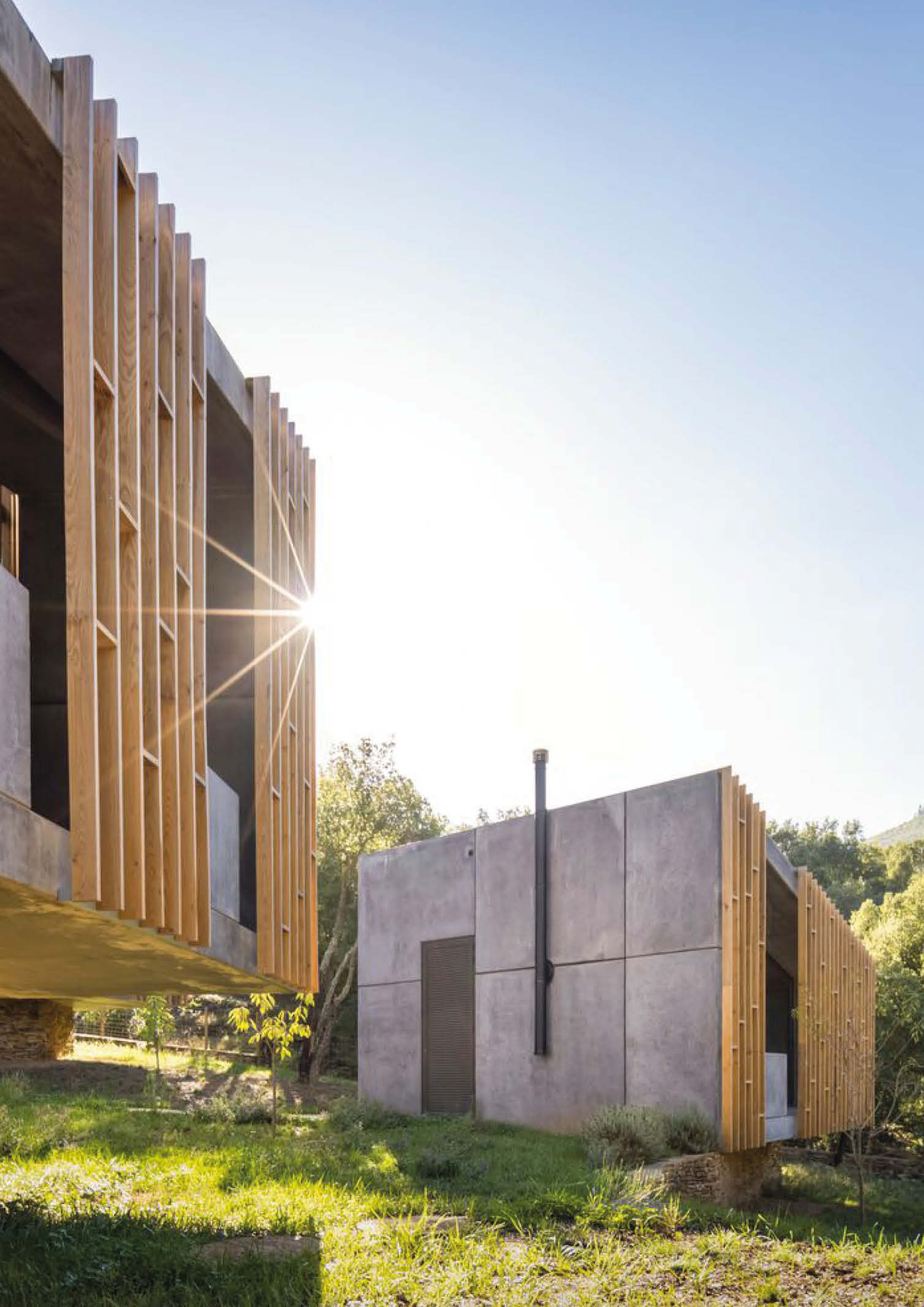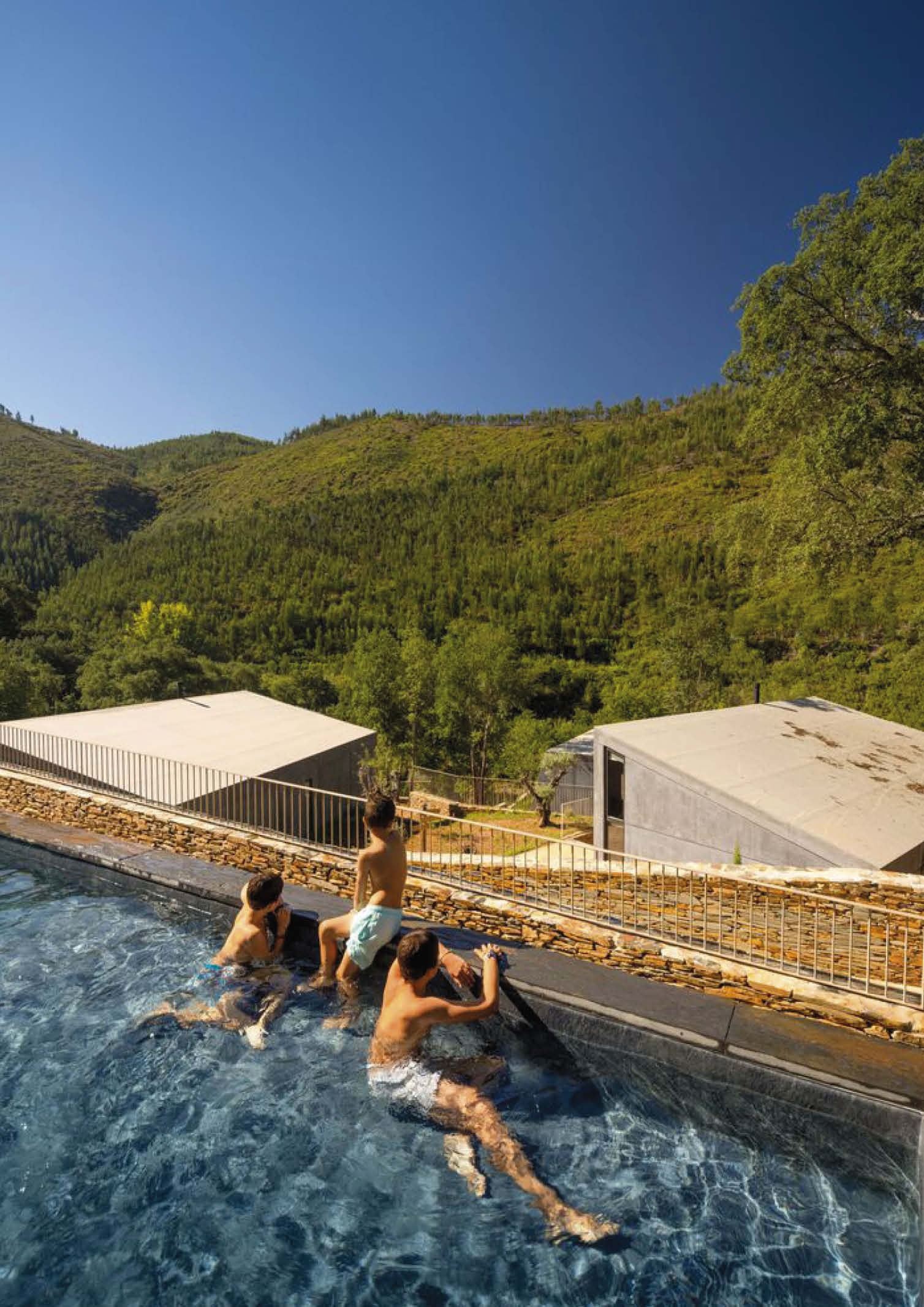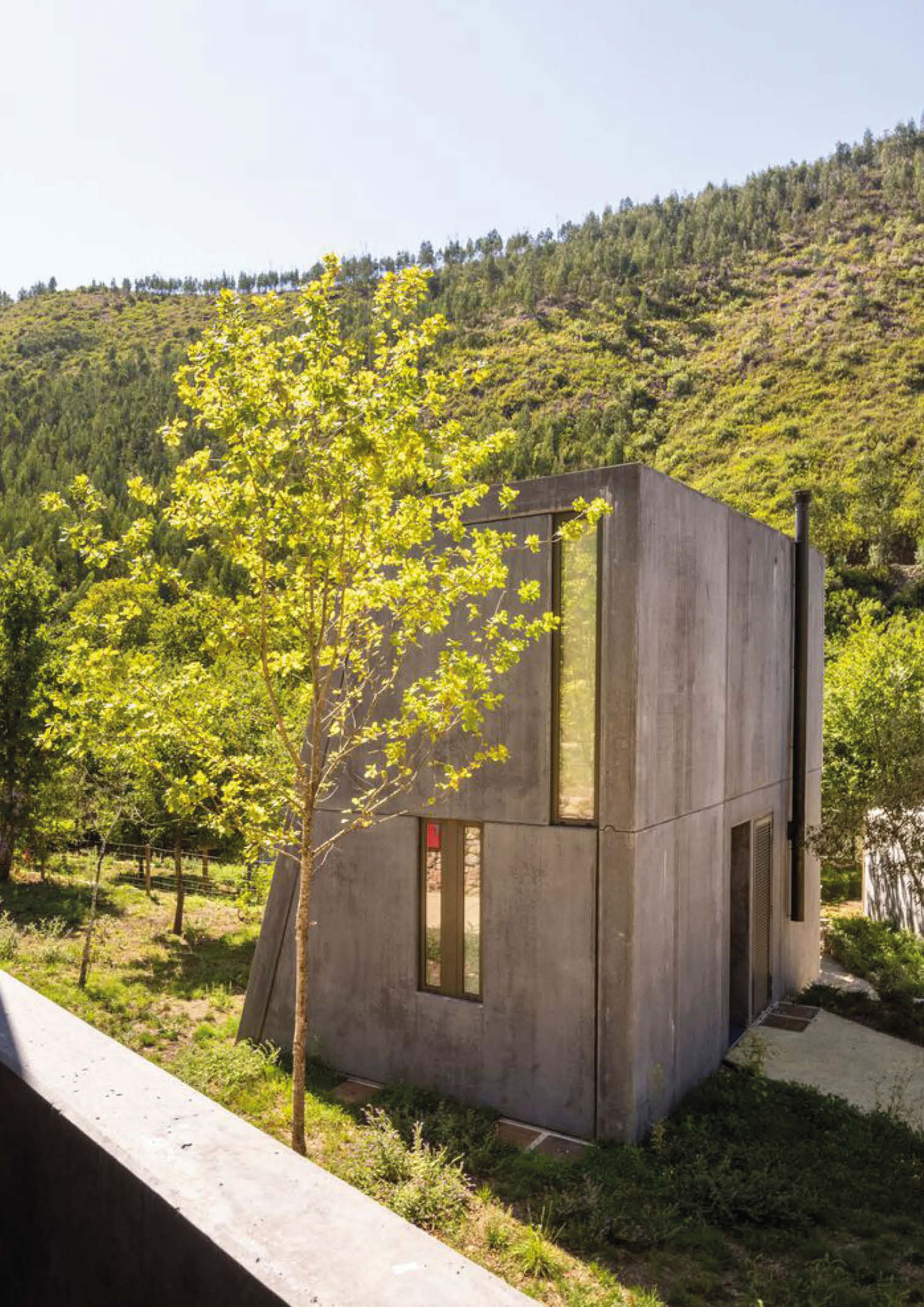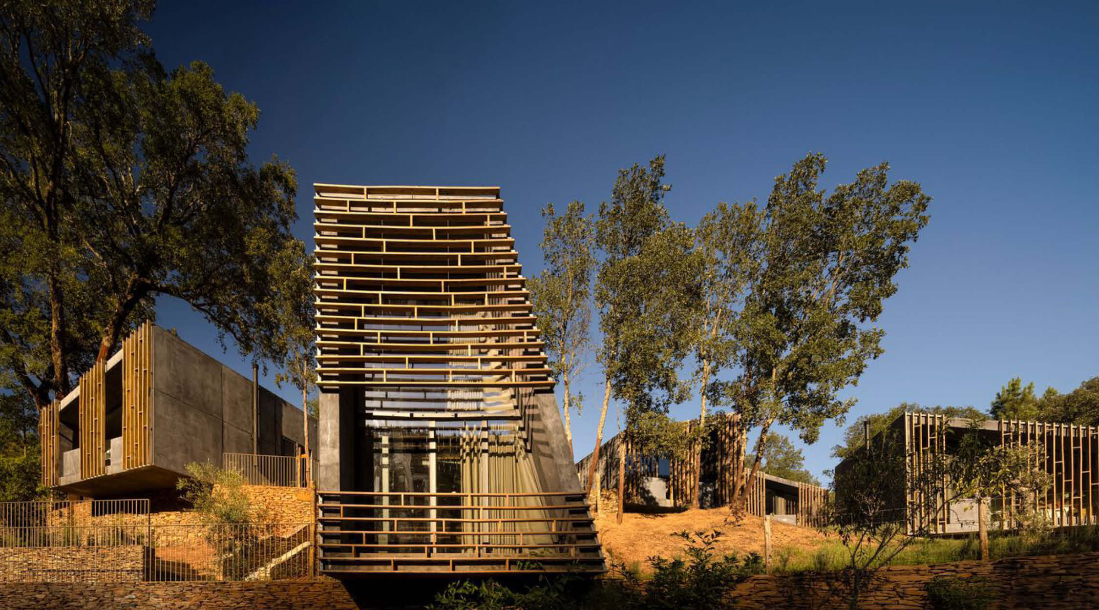 Summary architectural studio has completed the construction of cabins made of concrete and wood in the rugged terrain of Paradinha, Portugal. The architectural team carefully distributed 11 cabins throughout the property. The project’s site near the Paiva river with existing lush vegetation was considered, resulting in minimal site alteration. Each unit is between 28 and 58 square meters in size and is oriented differently to provide a unique view of the forest and river. All are positioned with nominal disruption to the site’s old stone walls and flora.