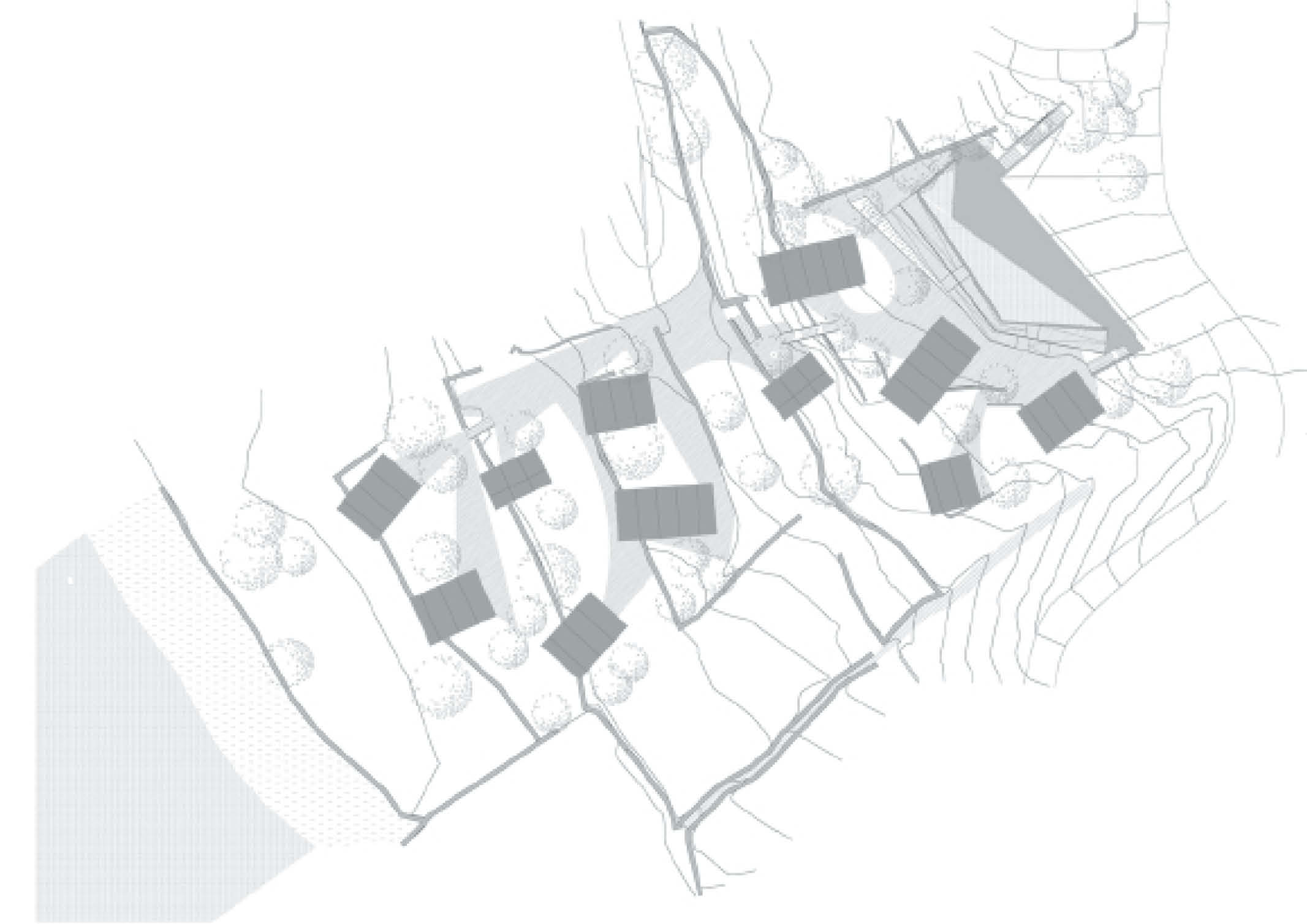 The site’s rugged terrain made traditional construction difficult and costly. As a response, the architectural team opted for prefabricated structures to streamline the construction process. The most cost-efficient method was to build off-site using the company’s own modular system. The process also allowed them to learn more about the building technique. The technical installations were centralized in a single module and extended externally to the other models. This procedure was routinely repeated throughout the entire project, thereby accelerating the construction phase.