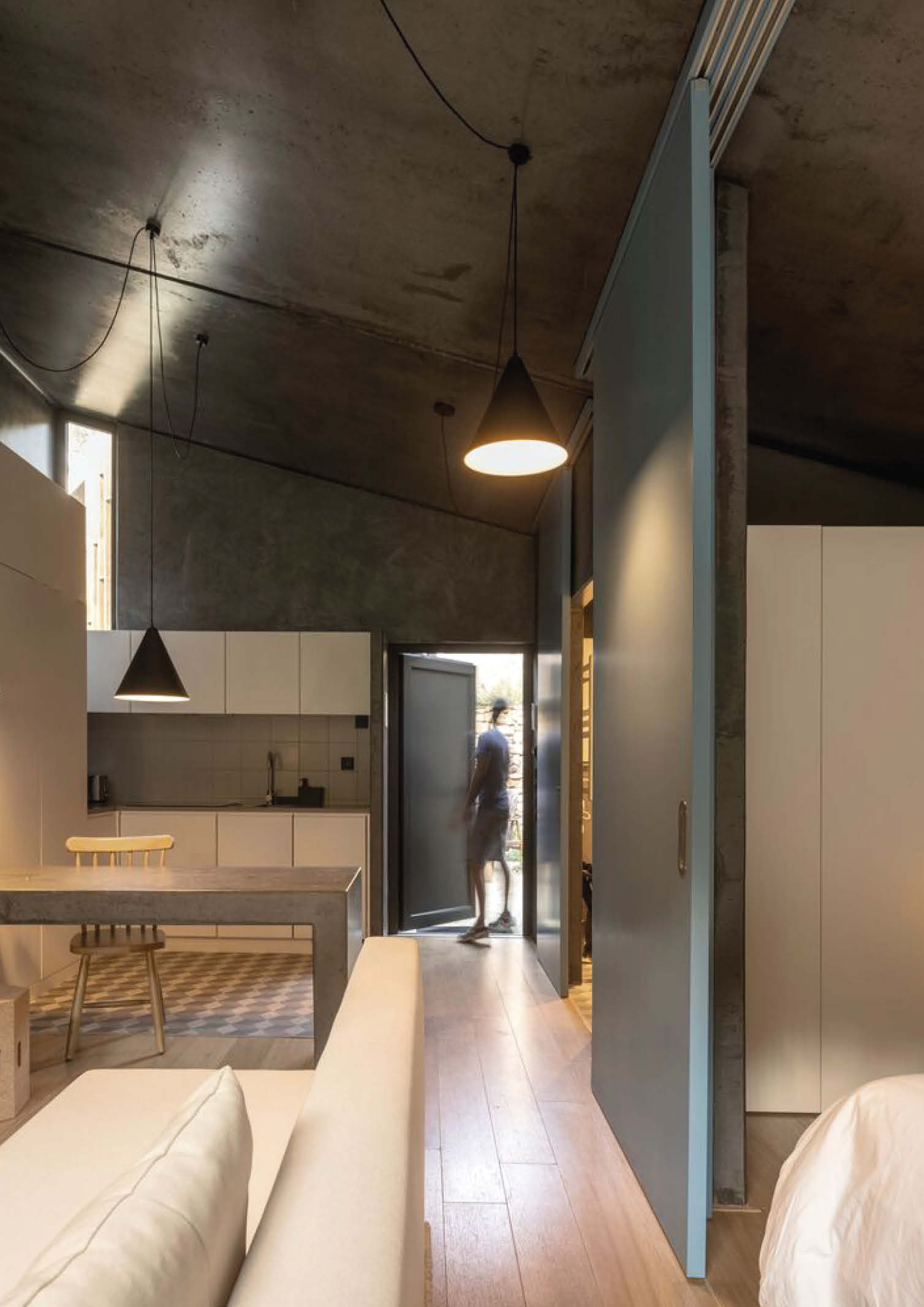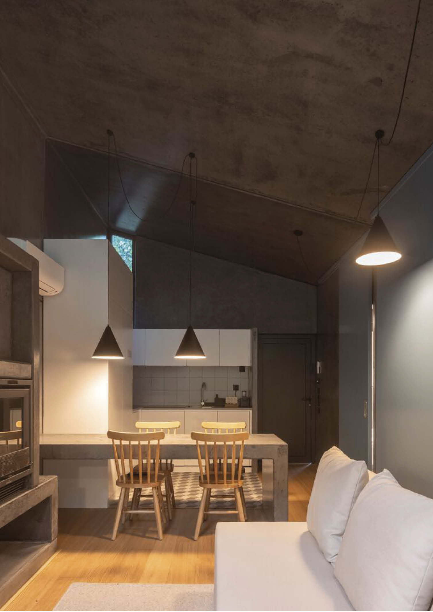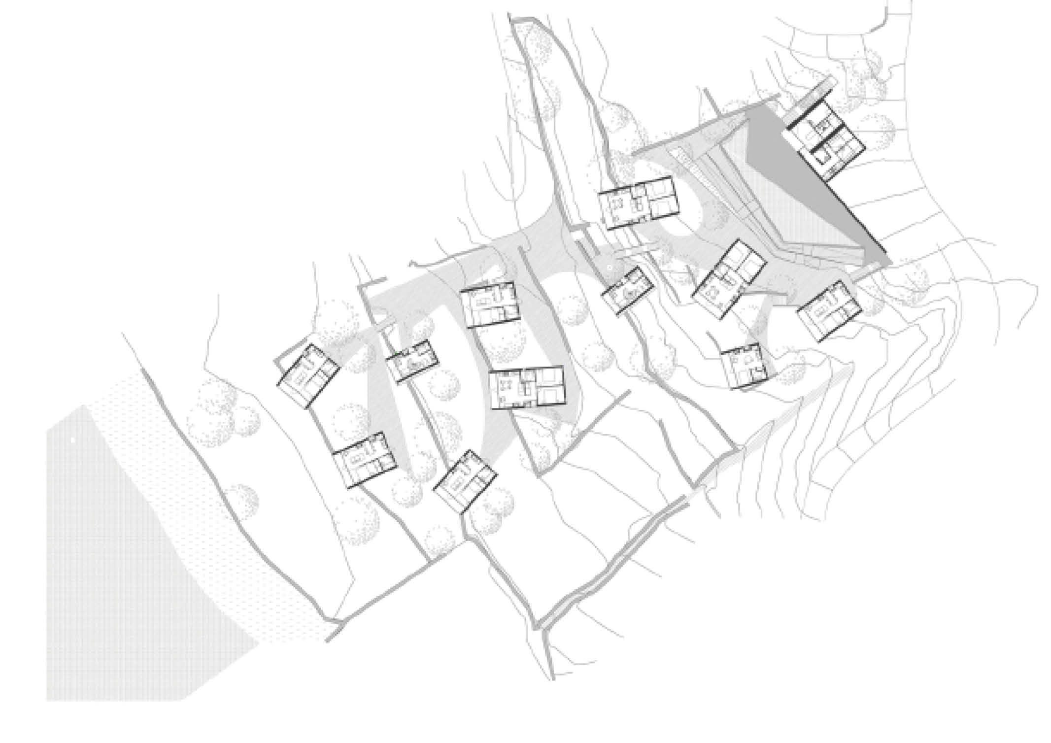 The client’s initial request was to design tourist accommodations. Summary studio, on the other hand, proposed building cabin houses so that some of them could be used as full-time residences rather than tourist rental units. Each home is constructed from unfinished concrete with vertical wood slats for function and form. In addition to a living room, dining area, kitchen, bedrooms, and bathrooms, the interior features minimal furnishings and wooden floors.