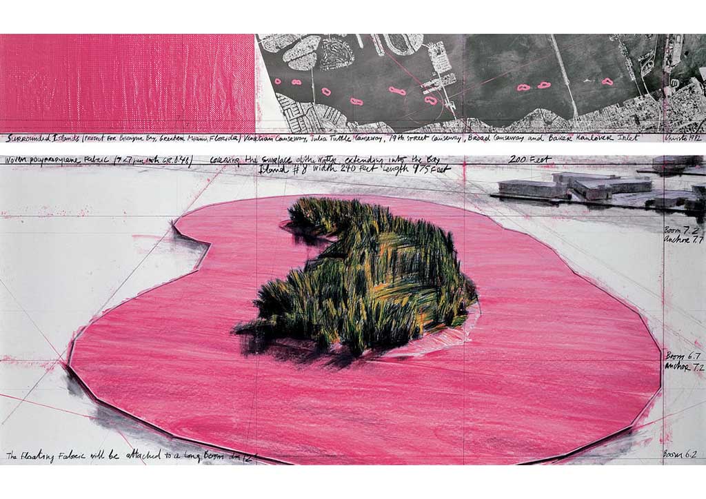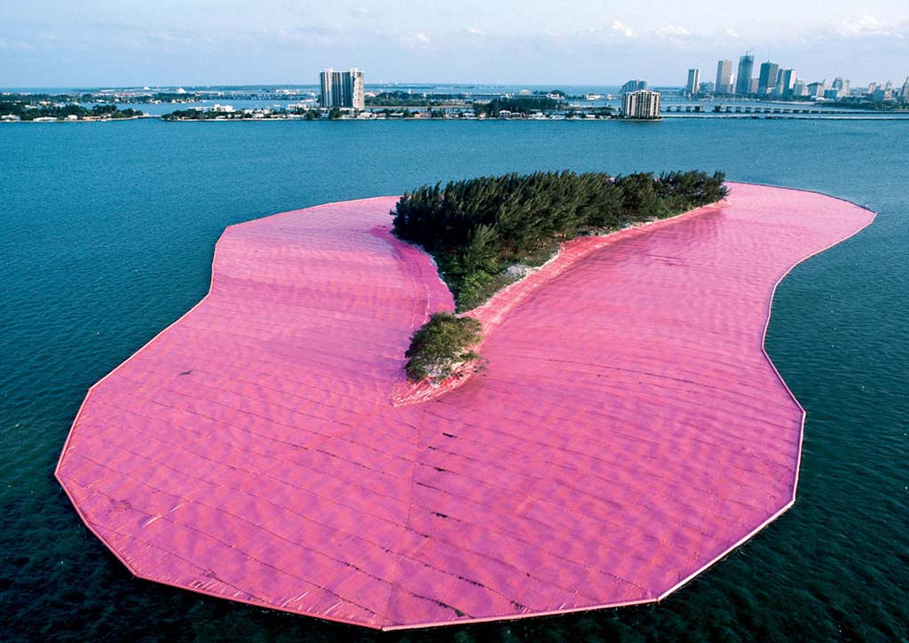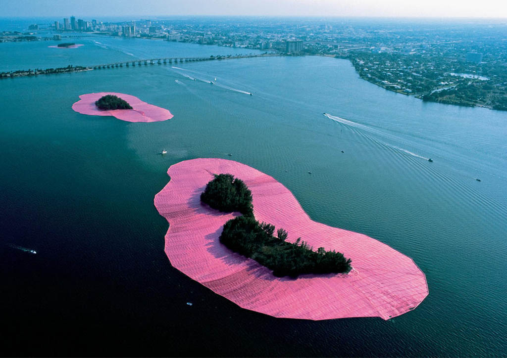 Probably one of their most expressive projects, Christo and Jeanne-Claude’s Surrounded Islands is a manifestation of beauty in isolation. The venue of the project, Biscayne Bay, has been known to be isolated from direct marine influence at least over the last two centuries. Using 79 patterns divided into 6.5 million square feet of floating pink woven polypropylene fabric, the artists followed the outline of 11 islands.
