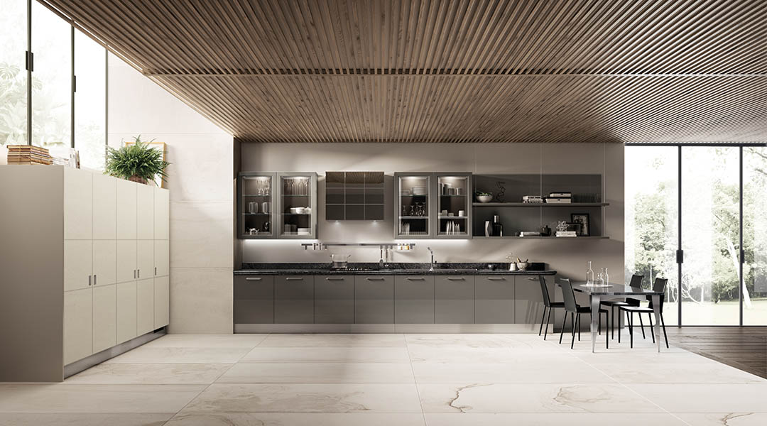 With its stunning wealth of solutions, Scavolini showcases a wide-ranging collection that exceeds any kitchen’s aesthetic and furnishing requirements with a theatrical flourish