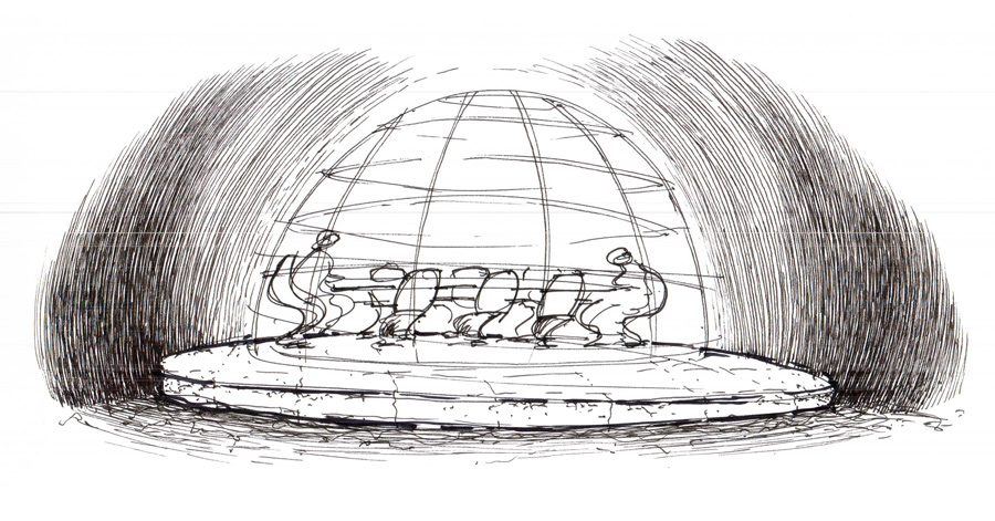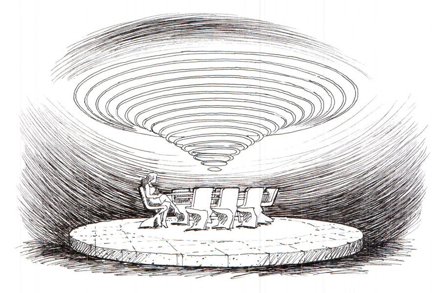 One implication of the competition brief concerned the primacy of the tangible. In normative building design, concept evolves into fruition—from paper to reality, via bricks and mortar. Because space and envelope are delineated with materials and assemblies, entire vocabularies are assigned to the stuff of construction. Seminal movements in design, Modernism chief among them, are predicated on this collective literacy. It is perhaps for this reason that Reyner Banham titled his history of Modernism as Theory and Design in the First Machine Age, implying that an industrial aesthetic of straight edges and smooth surfaces defined the dominant character of his subject. Similarly, the American historian, Henry-Russell Hitchcock, titled his reference on Frank Lloyd Wright, In the Nature of Materials, to suggest how a unique grammar of physicality was central to that architect’s canon.