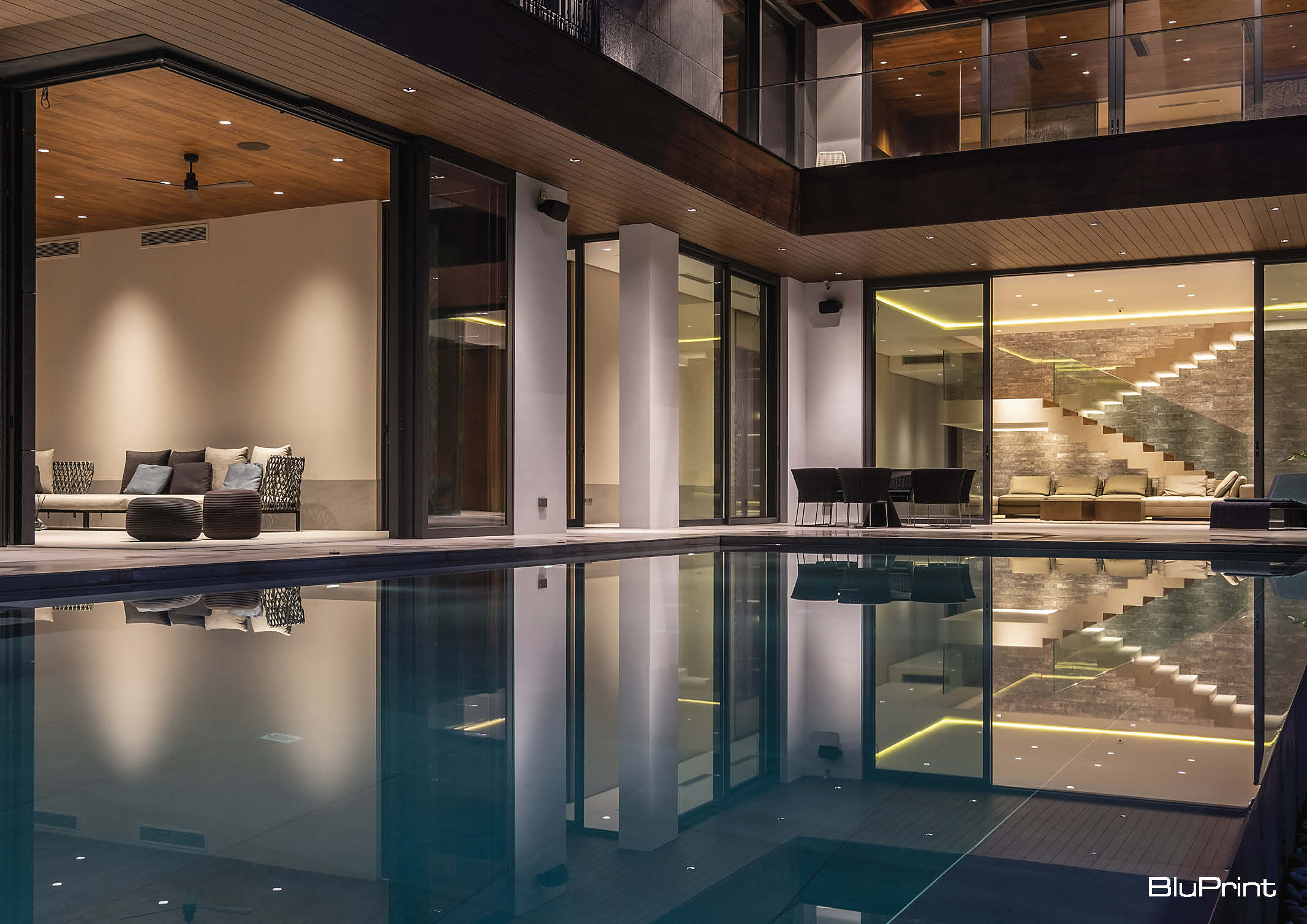 This residence is a masterful blend of texture and materiality, incorporating stone, wood, glass, and concrete in a harmonious marriage. Each material is thoughtfully chosen and meticulously applied, contributing to a rich sensory experience. The stone offers a grounding, earthy feel, while the wood brings warmth and natural beauty. Additionally, the glass provides lightness and transparency. Touches of concrete add an industrial edge that balances the overall design.