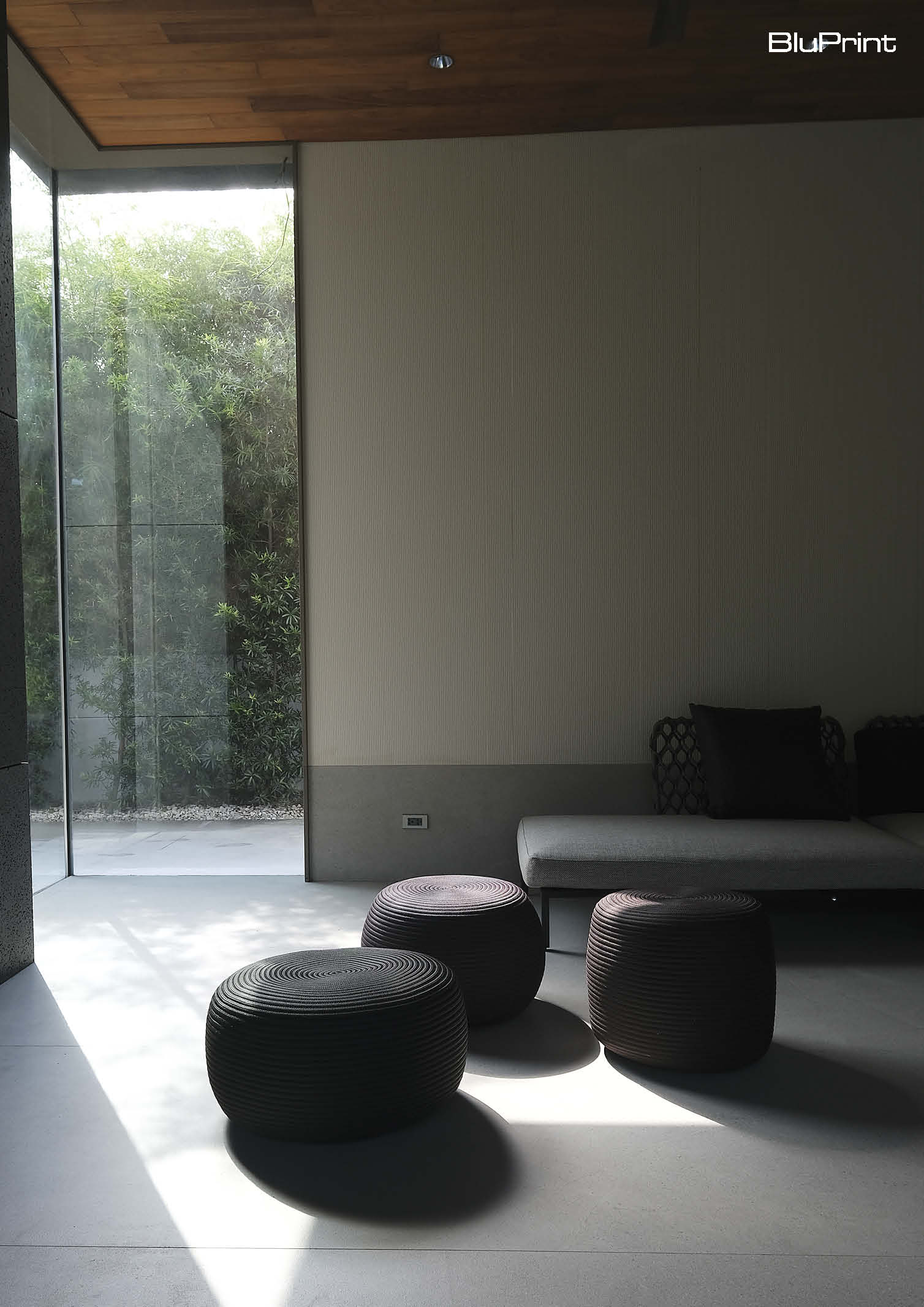 During the design phase, Ar. Nazareno drew inspiration from his travels to Iceland, where he encountered lava stone prevalent in the landscape. Intrigued by its durability and aesthetics, he proposed its use for the residence, a suggestion readily accepted by the owner who had also visited Iceland. This decision shaped the project significantly, with smooth lava stone and Parklex—a natural wood veneer cladding—chosen for their ease of maintenance and timeless appeal.