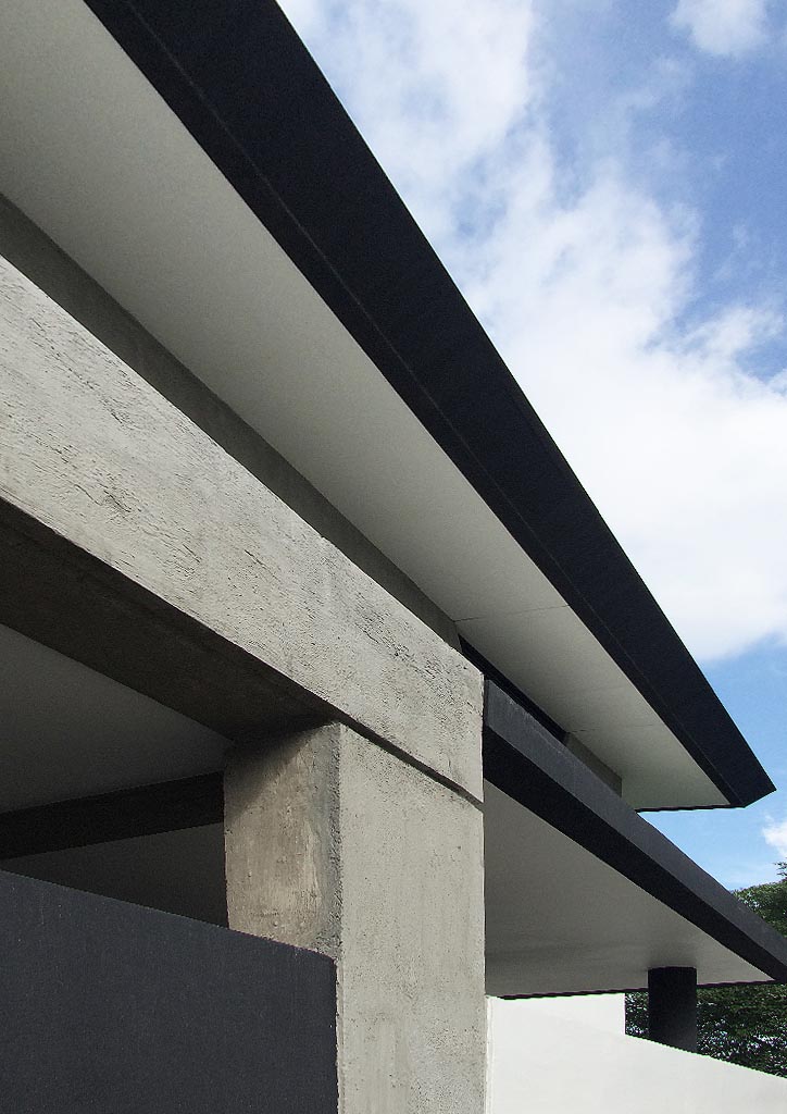 The house was designed according to its geographical location in its tropical climate. The project was strategically planned to where the sun rises and sets with a careful study of its behavior all throughout the year. The longest side of the house is parallel to the sun’s path, which minimizes heat gain, and with a roof slightly tilted facing directly towards the sun’s azimuth creates better shade. The architect designed the house with minimal use of glazing on its façade to lessen heat absorption from the afternoon sun, with glass windows having a reflective coating to deflect heat even more. Toilets, walk-in-closet, and kitchen are strategically planned to act as a heat barrier for bedrooms when the sun is low during the cold season. The house has extended roof eaves not only to block the heat coming from the sun but also to keep the interior spaces dry during the rainy season. Energy efficiency principles are also applied in the project. The house uses natural light coming from the sun to light all spaces during the day and is employed with LED lights to be used when the sun is out. The roof features cross-ventilated openings to minimize heat accumulation during the day, cooling the roof area naturally and offsetting the use of the air-conditioning system for the interior spaces below.