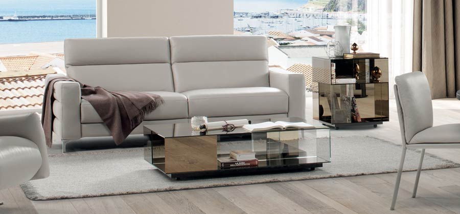 Bursting with color and geometric shapes, Natuzzi’s Labirinto table in brass/bronze finish gives nothing but luxurious vibes with its mirror-like finish. With open compartments consisting of clear and colored glass, the Labirinto table is truly mesmerizing.