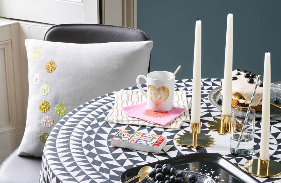 Bring a touch of gold to your kitchen or your home office with these two mugs designed by designer and architect Alexander Girard. The two designs, “New Sun” and “Love Heart Gold” are graphic motifs etched in gold on a white mug.