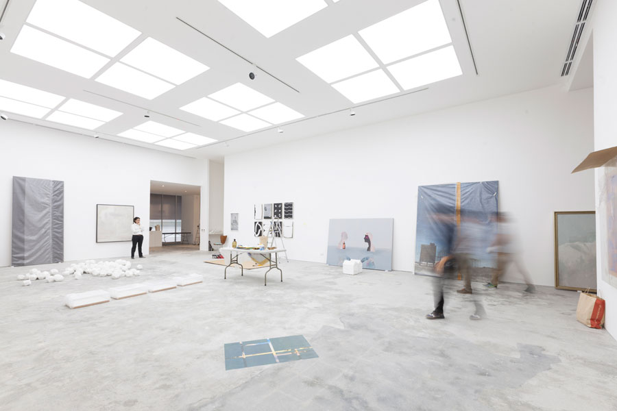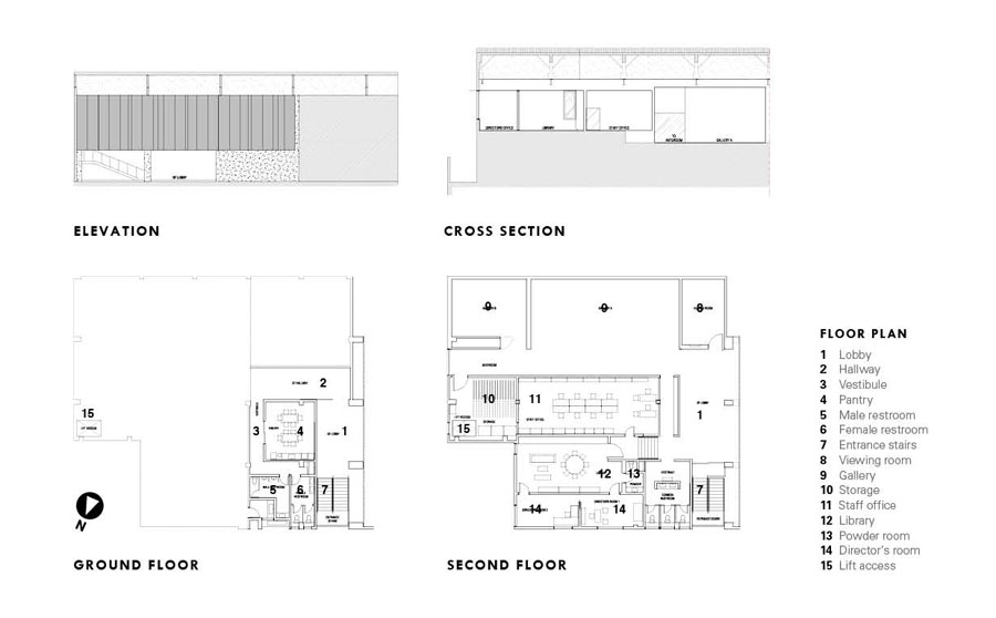 The first floor of the building contains a kitchen, administration areas, and provisions for artist studios. Upon entering the main space on the second floor, one is welcomed by a lobby that feeds into the main and secondary galleries, viewing rooms, library, and offices. “The reception area is a generous gesture by the architect because it tells you this is not just a gallery,” says Lorenzo. While the elevation was an easy decision (clients and architect all drawn to one of the two proposed schemes), there were back and forth discussions regarding the interior layout. In addition, the working timeline was reduced from six to three and a half months so contractor Aquis Construction had to take on long shifts and work through the holidays.