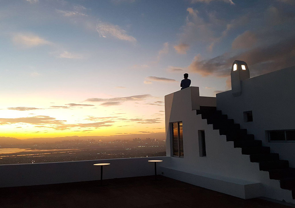 Leaño has always dreamt of having his own art gallery and thought that this property with a 360-degree view of Binangonan would be perfect for art exhibitions. He built a five-level structure with a mixture of Mediterranean and industrial characteristics, similar to his work at Pinto Art Museum.
