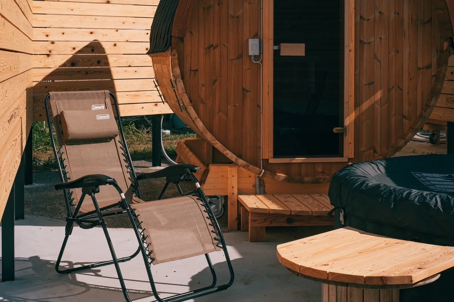 Taking advantage of the environment, IWADO BASE offers a range of outdoor activities. To the east of the structure are the barrel saunas, where wooden dividers are placed to provide privacy for guests. On the campsite, guests can rent out items for a BBQ, such as grills, tableware, chairs, and cooking utensils. Additionally, rental items such as mats and lanterns are provided, so guests can lie down and gaze at the starry sky. Cited as a “glamping retreat,” these amenities place Tottorri at the center of every activity.
