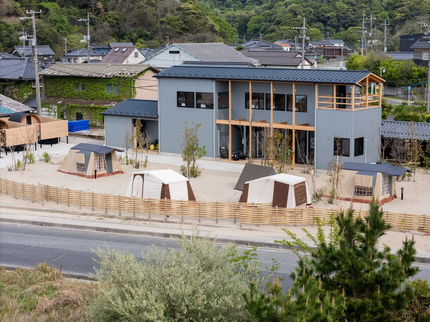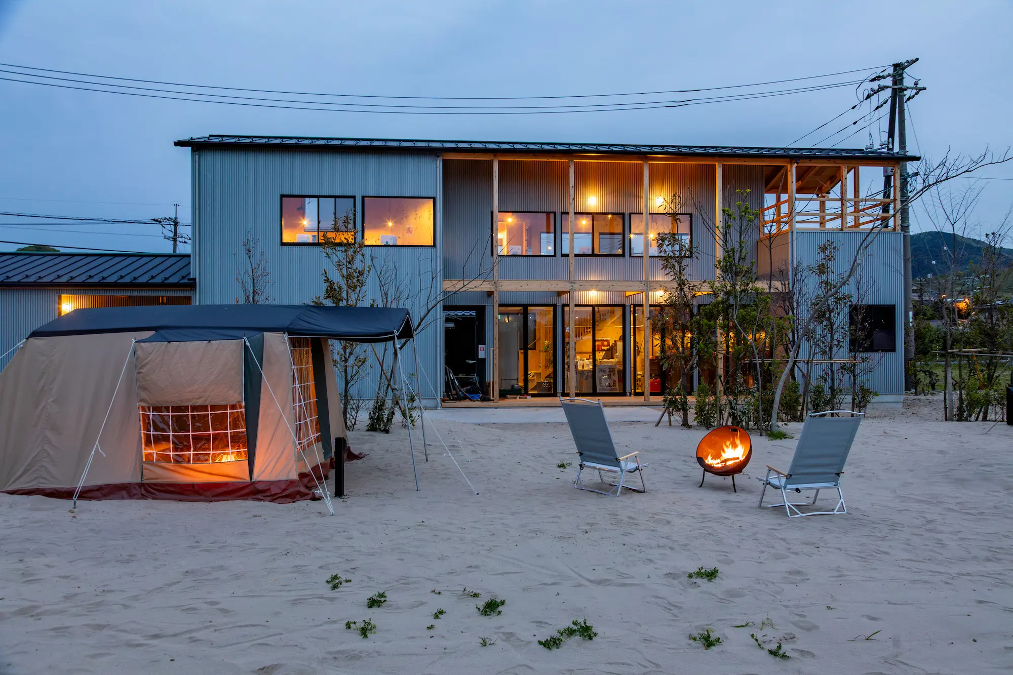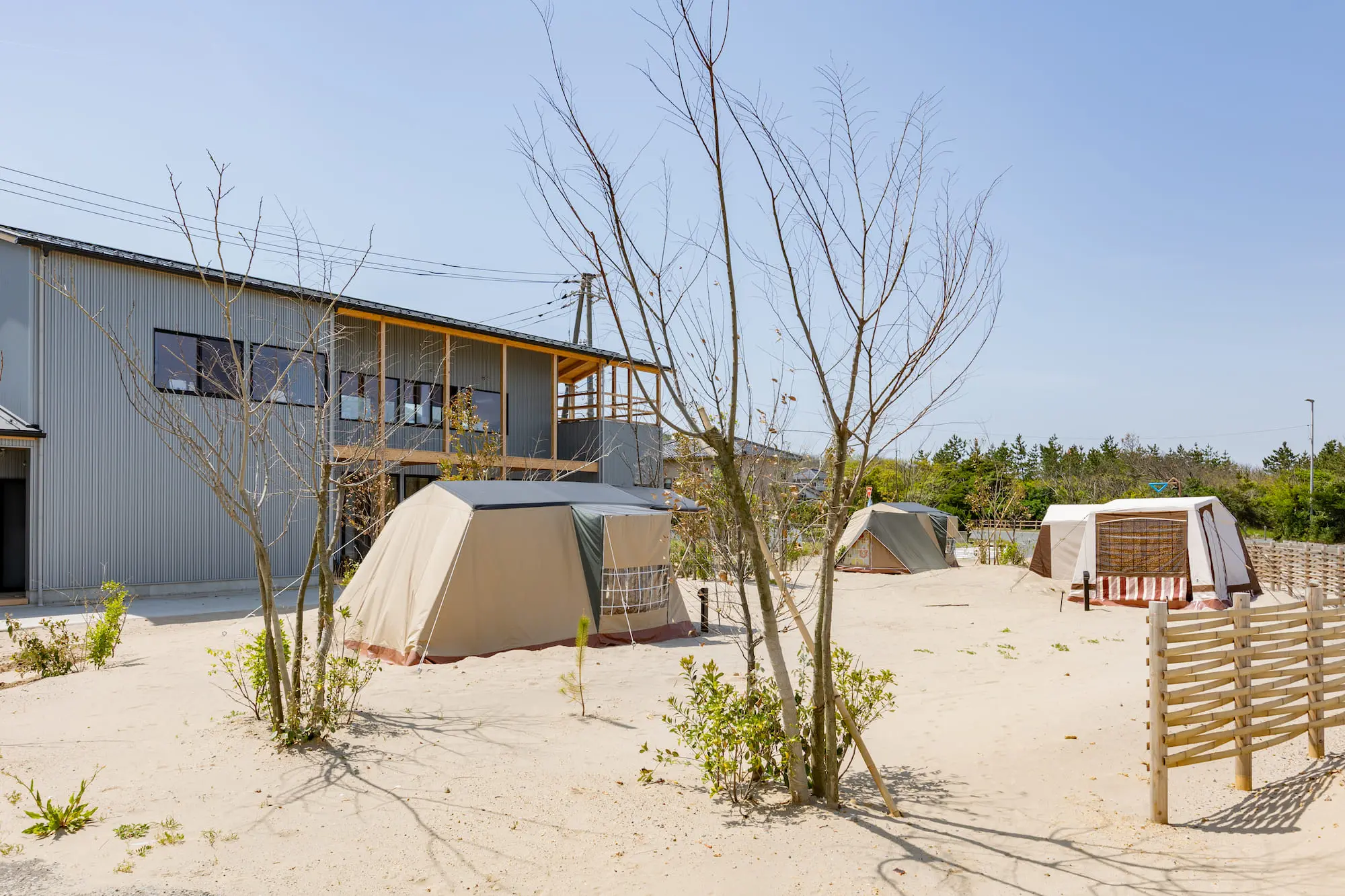 ISHIKAWASAMBO describes the complex as a “space that lets people step into nature without sacrificing comfort and the landscape that makes it special.” As a result, IWADO BASE is designed with restraint to highlight and respect the natural beauty of the Tottori coastline.