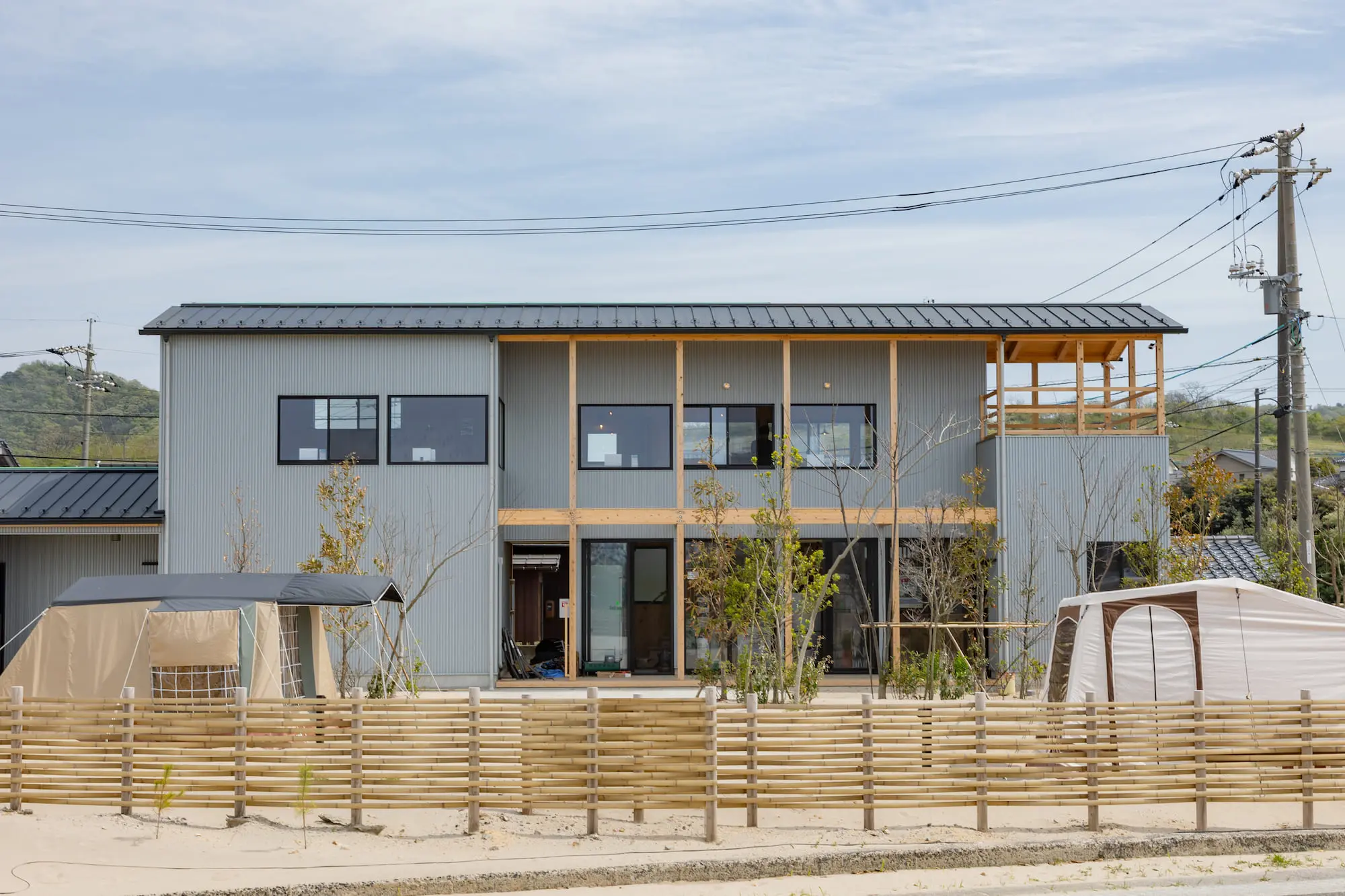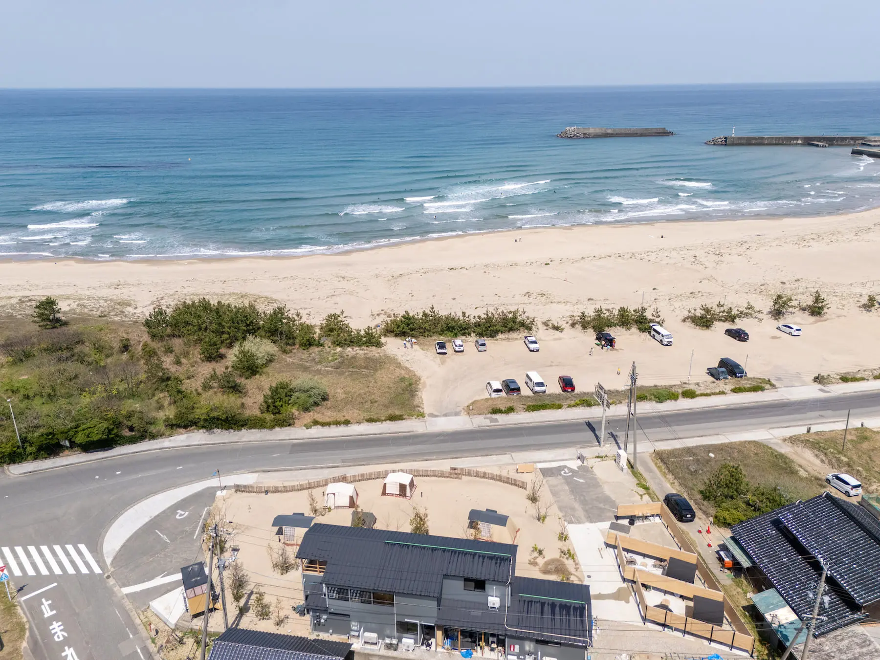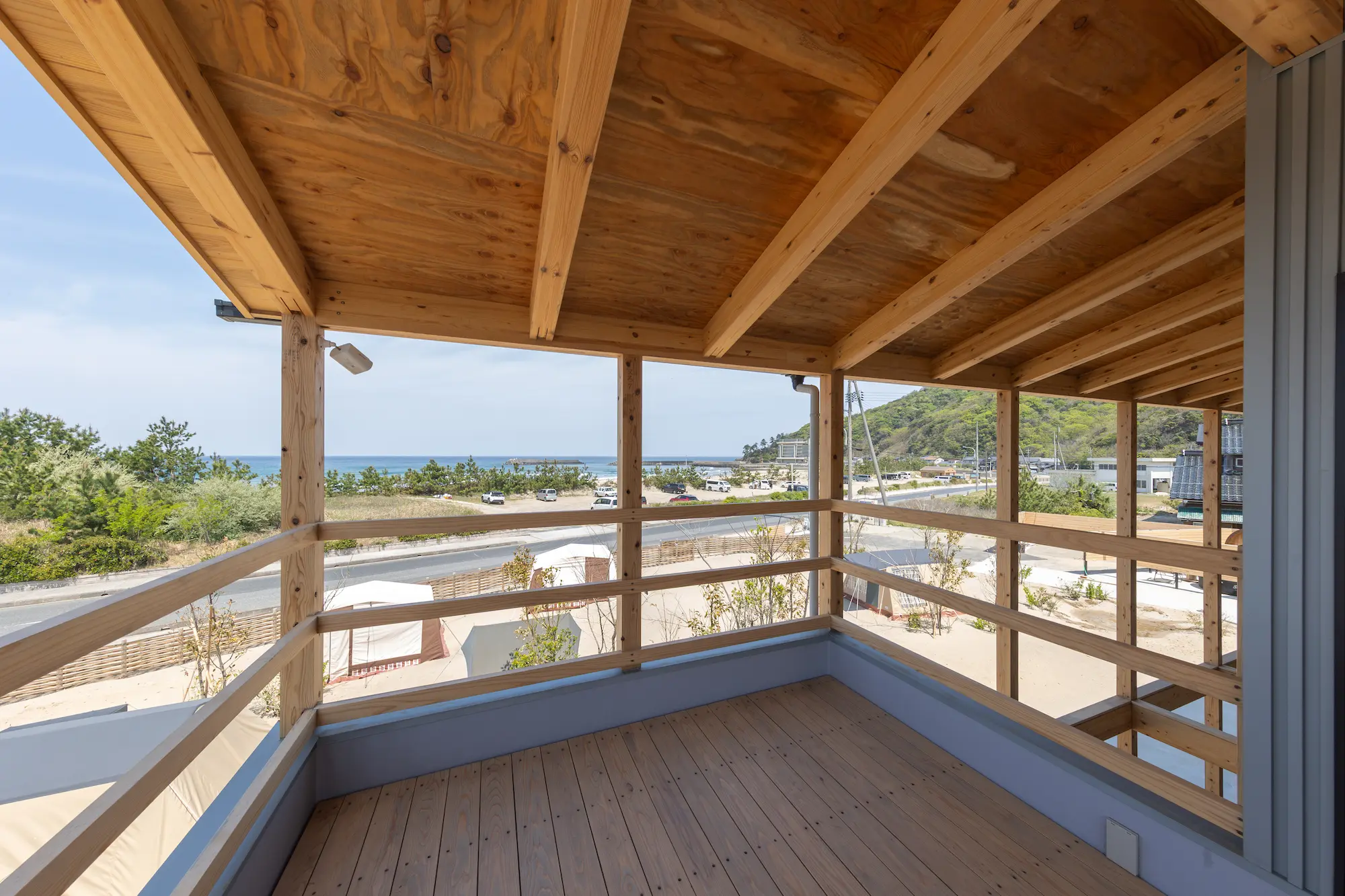 ISHIKAWASAMBO describes the complex as a “space that lets people step into nature without sacrificing comfort and the landscape that makes it special.” As a result, IWADO BASE is designed with restraint to highlight and respect the natural beauty of the Tottori coastline.