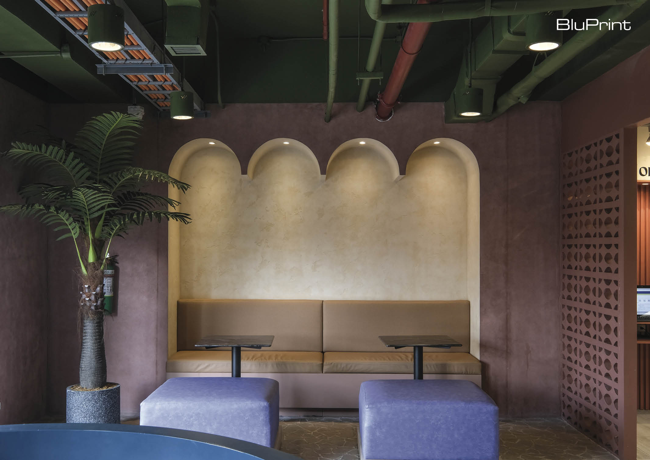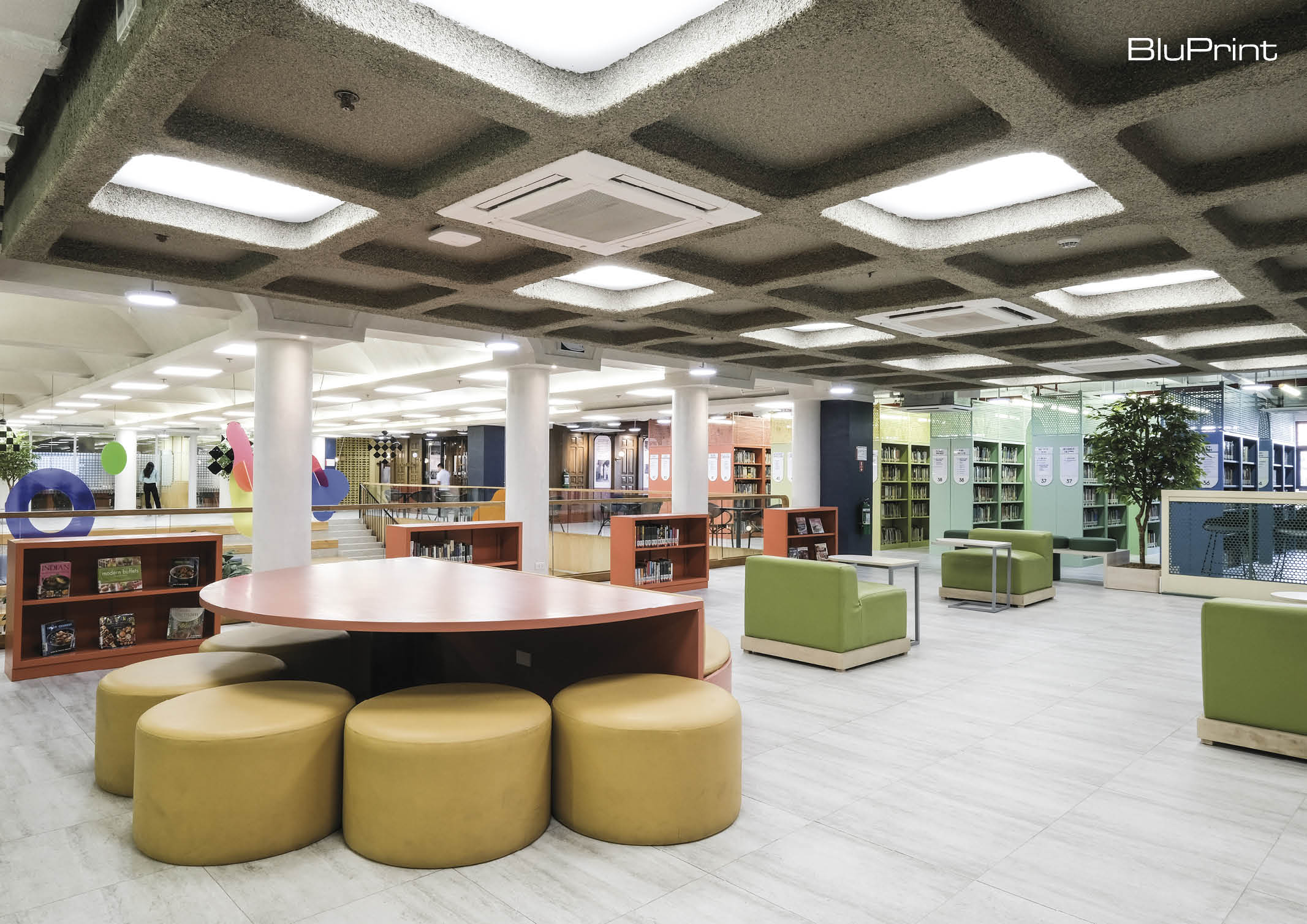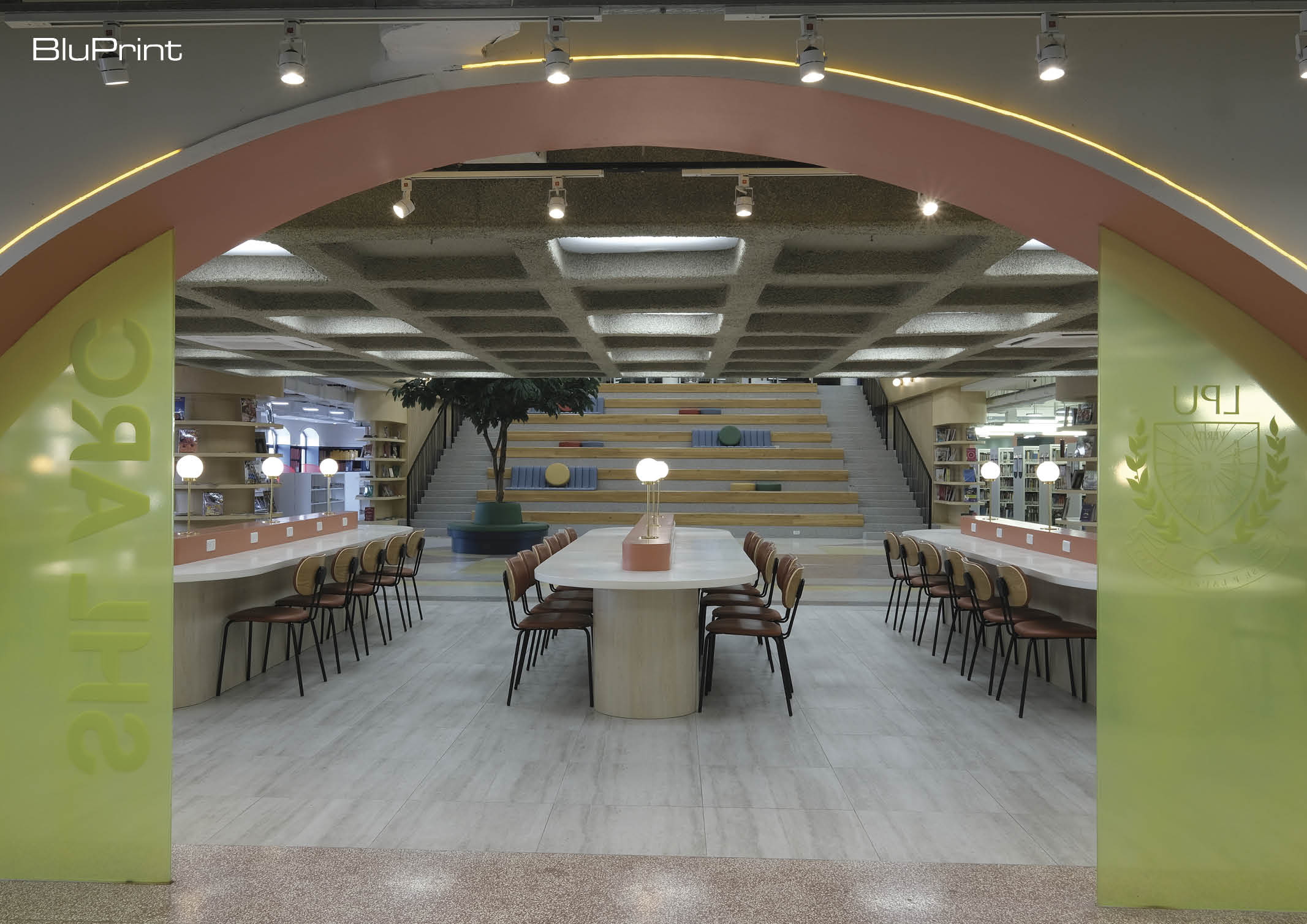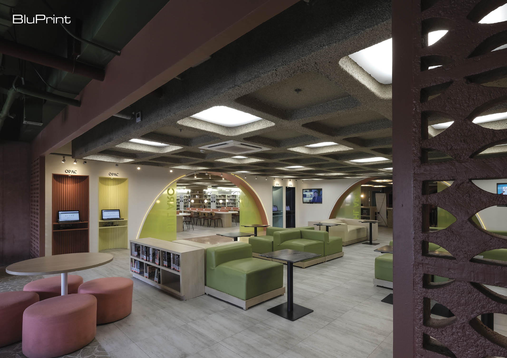 The main library is characterized by its pastel-colored details. Studio Mara also played with different textures and patterns, giving every area a unique character.