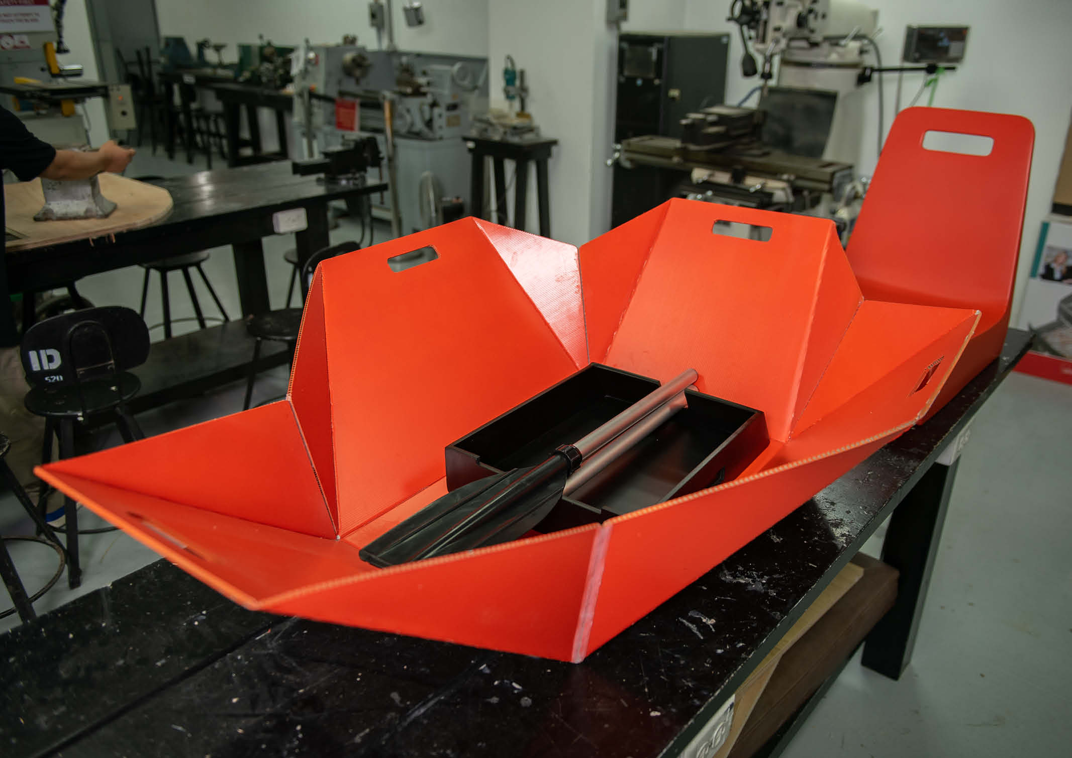 He explored on the modularity and transformability of the object, taking inspiration from the folding techniques of origami. Taking into consideration that not everyone can easily understand how most devices work, Alek wanted the design to be as intuitive as possible so that anyone can use it. For the mechanism, he wanted to keep it at minimal, especially for emergencies where quick setup is integral. Features such as reflective tapes that add visual perceptibility for rescuers and hand grips that can be used to tie rescue cords or to link rafts, add onto the simple but clever design of the raft.