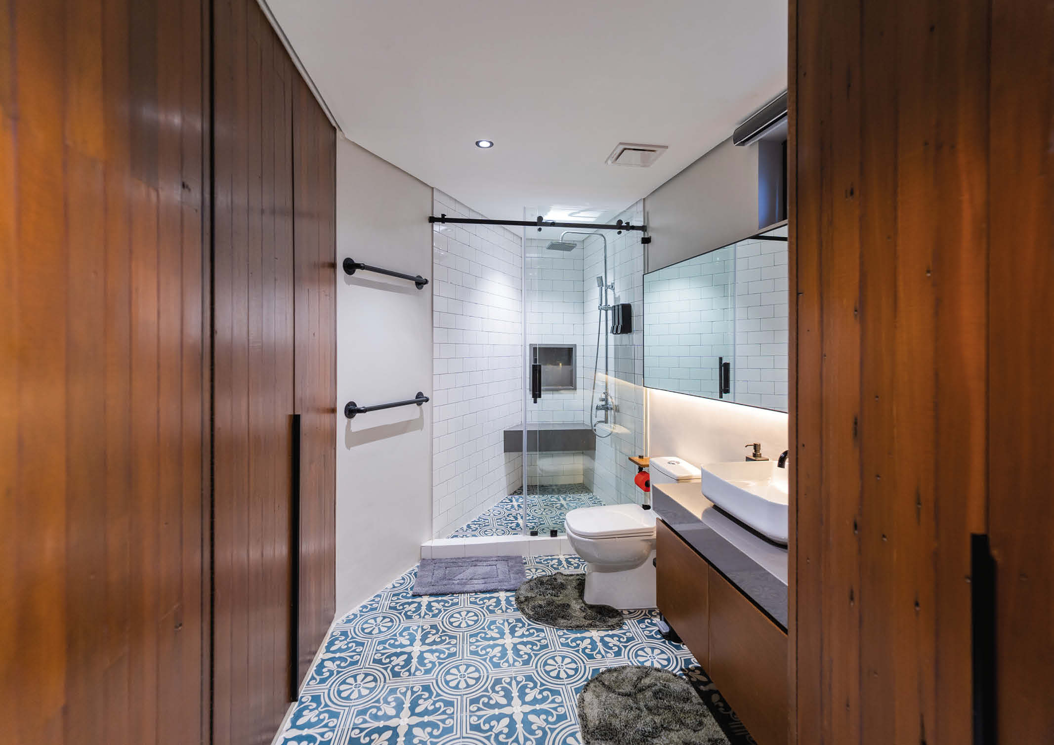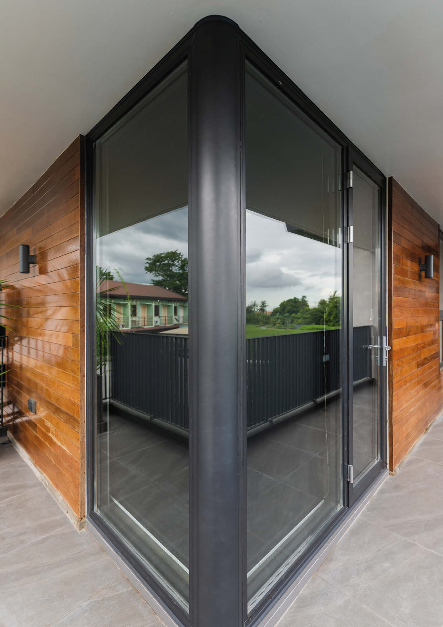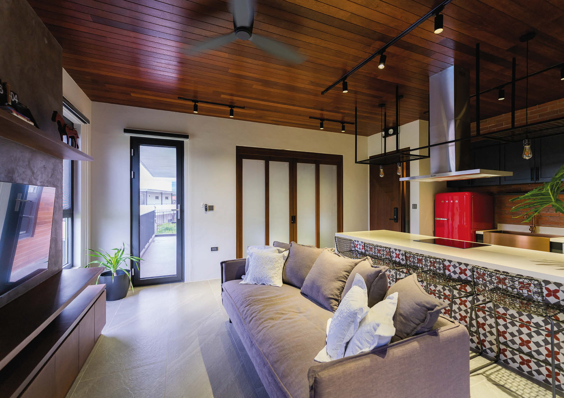 “We used full length bi-fold doors on three sides to really open up the space. Complementing grey tiles were used to visually connect the indoor with the outdoors. And while being visually connected to the outdoors is important, we chose double pane windows and doors for sound isolation. Aside from having better thermal insulation critical for a south south-east facing structure, we also considered its good sound insulation qualities for different situations that the space maybe used.”