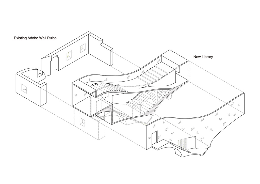 A very interesting fact about the Library in the Ruins is that it was supposed to have a restored look to it. It originally was built from earth-rammed walls and, like traditional tattooing, it has become a lost art. With no craftsmen available to reconstruct these historic walls, Atelier Xi decided to modernize the look differently. Their design made sure that the old and the new were completely contrasting but in a way that would complement each other. With the smooth in-situ (concreted on-site) structures they added, the earth-rammed walls were highlighted all the more. What used to be an old and broken wall became a feature in the design that could not be replicated and it was so beautiful to see.