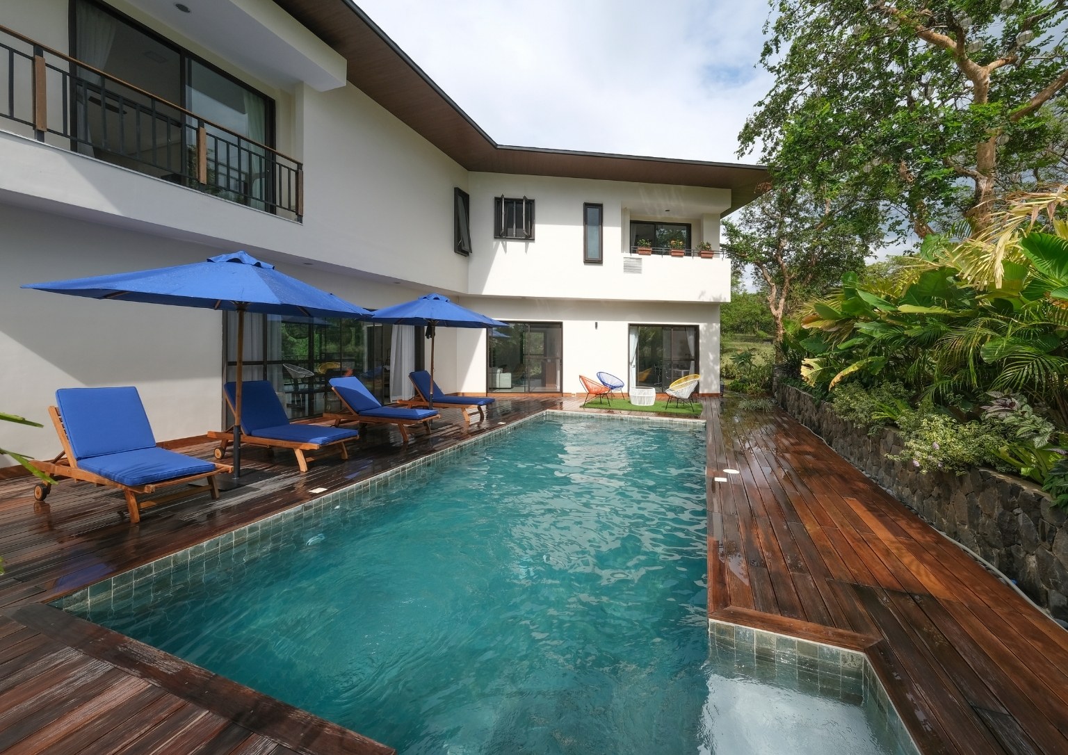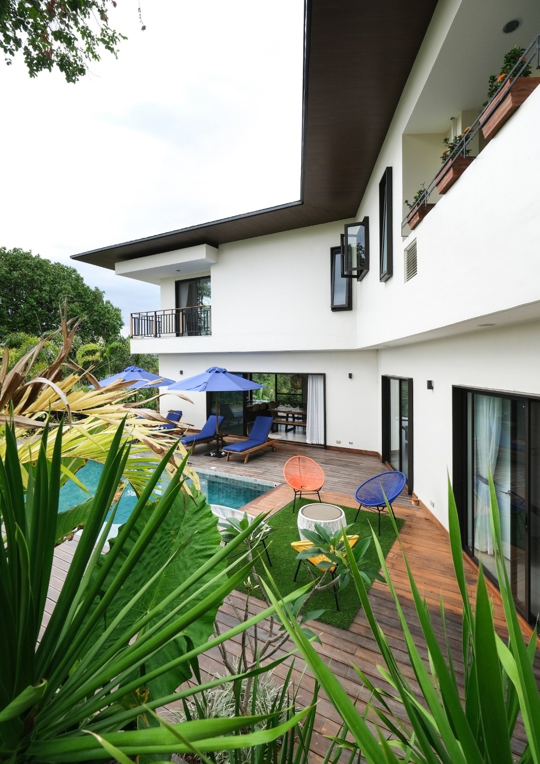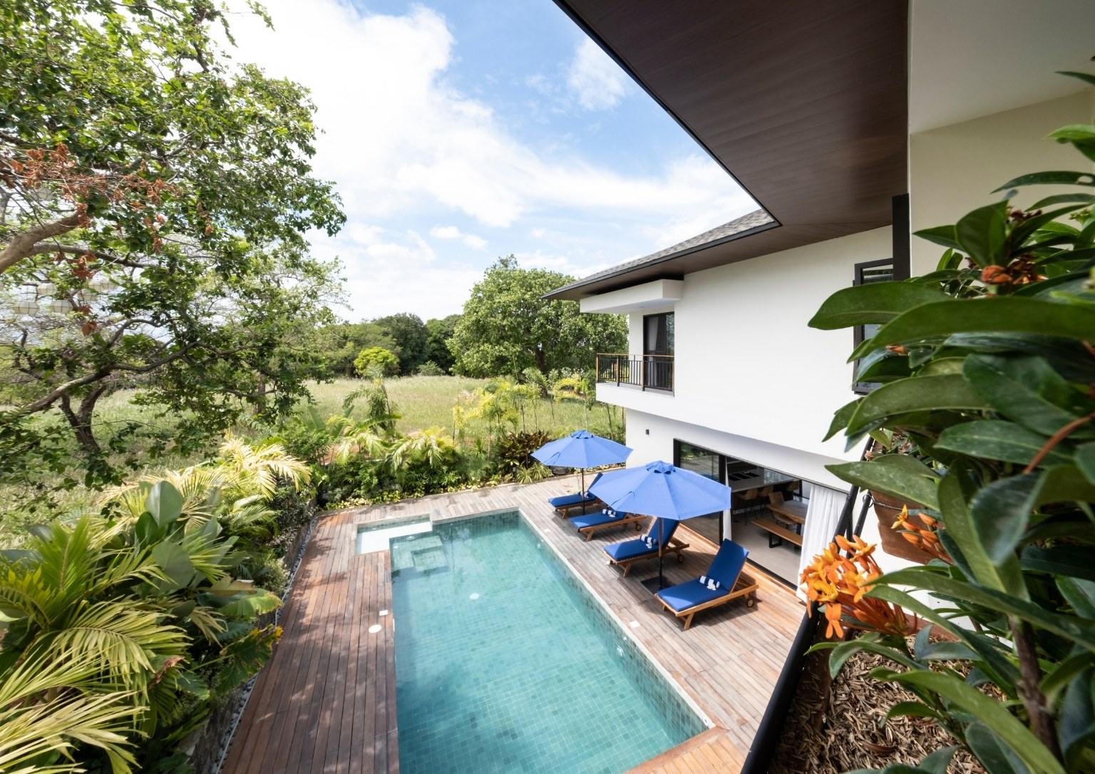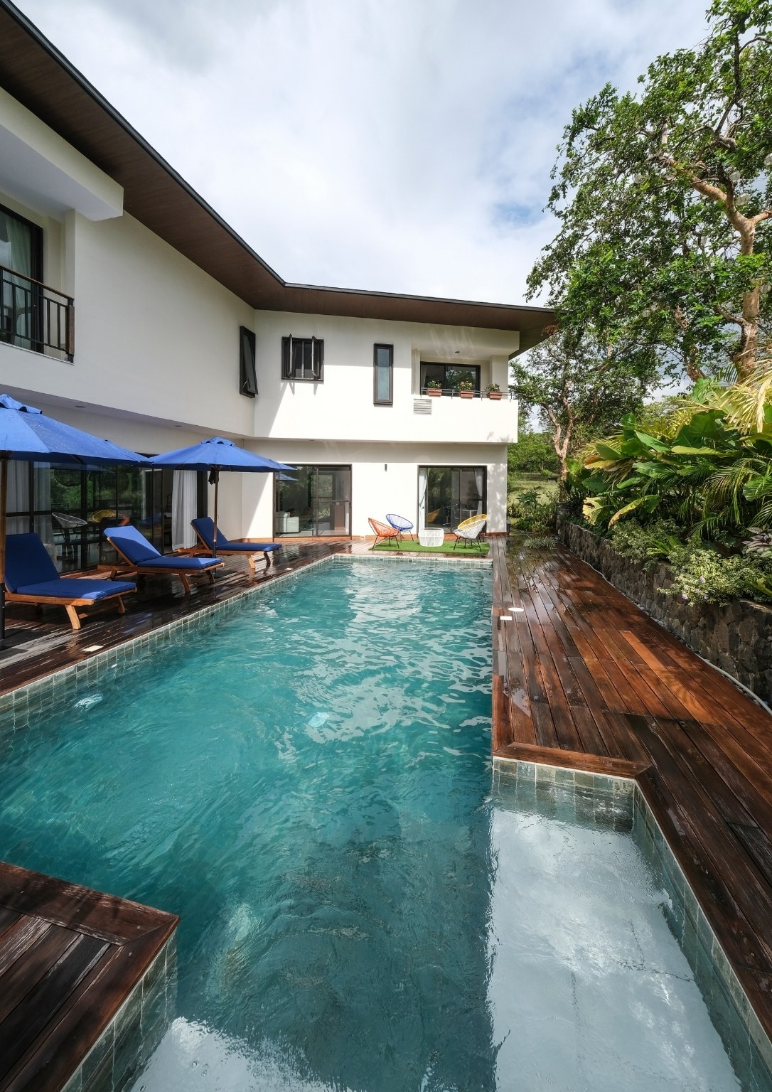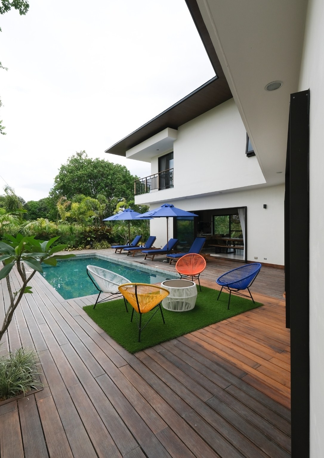 “Natural materials that connect the home to its surroundings play a key role in the design, and include Italian-inspired tiles, sustainable African wood for the pool deck, and Bali stones in a blue-green color for the pool tiles. Set amidst luxuriant tropical landscaping, Casa al Mare allows for an environment which re-establishes human connections with the locality while creating a unique close-to-nature guest experience,” Ar. Nati said of some of the design highlights that he envisioned for the weekend home.